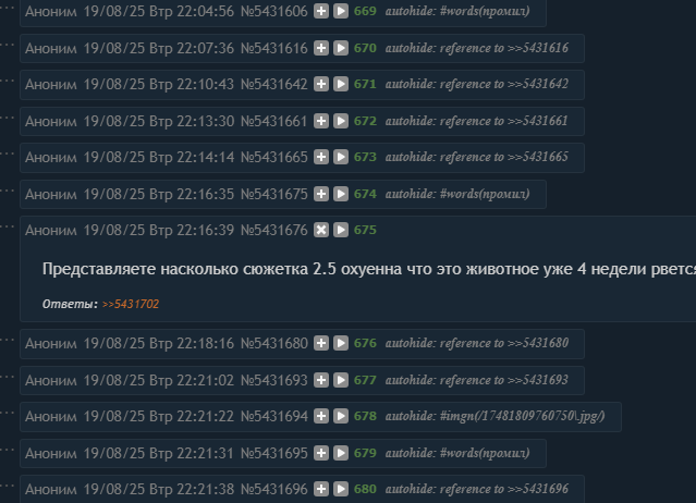 >>5433783 Это уёбище уже давно в скрытии, благо оригинальностью не отличается, проще только бота скрыть. Но по моему, ещё ни одного поста не было без семёнства. Сочувствую тем, кто это всё реально читает.