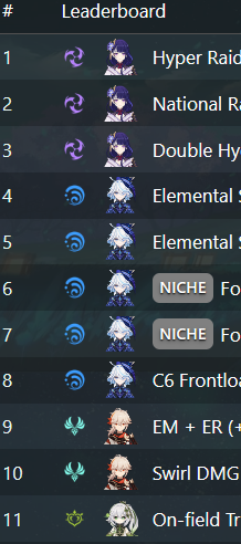 У меня нет Нёвиллета, но мою Клоринду она вообще не баффнула, в перегрузочной пачке она дамажит больше. Пробовал остальные, ощущается как-то ну такое. Возможно, с гидро-дд она играется лучше, чем с электро? Не то, чтобы пожалел, что выкрутил - сильные пачки уже есть, можно и для души кого-то забрать, но чисто по ощущениям чемпик Сумеру-тир, я не чувствую в ней никакой меты.