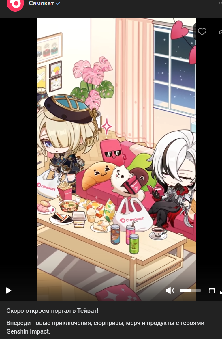 🔎Публикуем возможный список ивентовых позиций к коллаборации Самокат × Genshin Impact: ⭐Мармелад желейный самокат со вкусом малины и семенами чиа ⭐Набор бомбочек шоколадных самокат, розовая и голубая матча ⭐Батончик протеиновый самокат персик, с вафельной крошкой в глазури. ❤️Все товары будут в дизайне коллаборации. При покупке этих товаров можно будет активировать внутриигровые награды