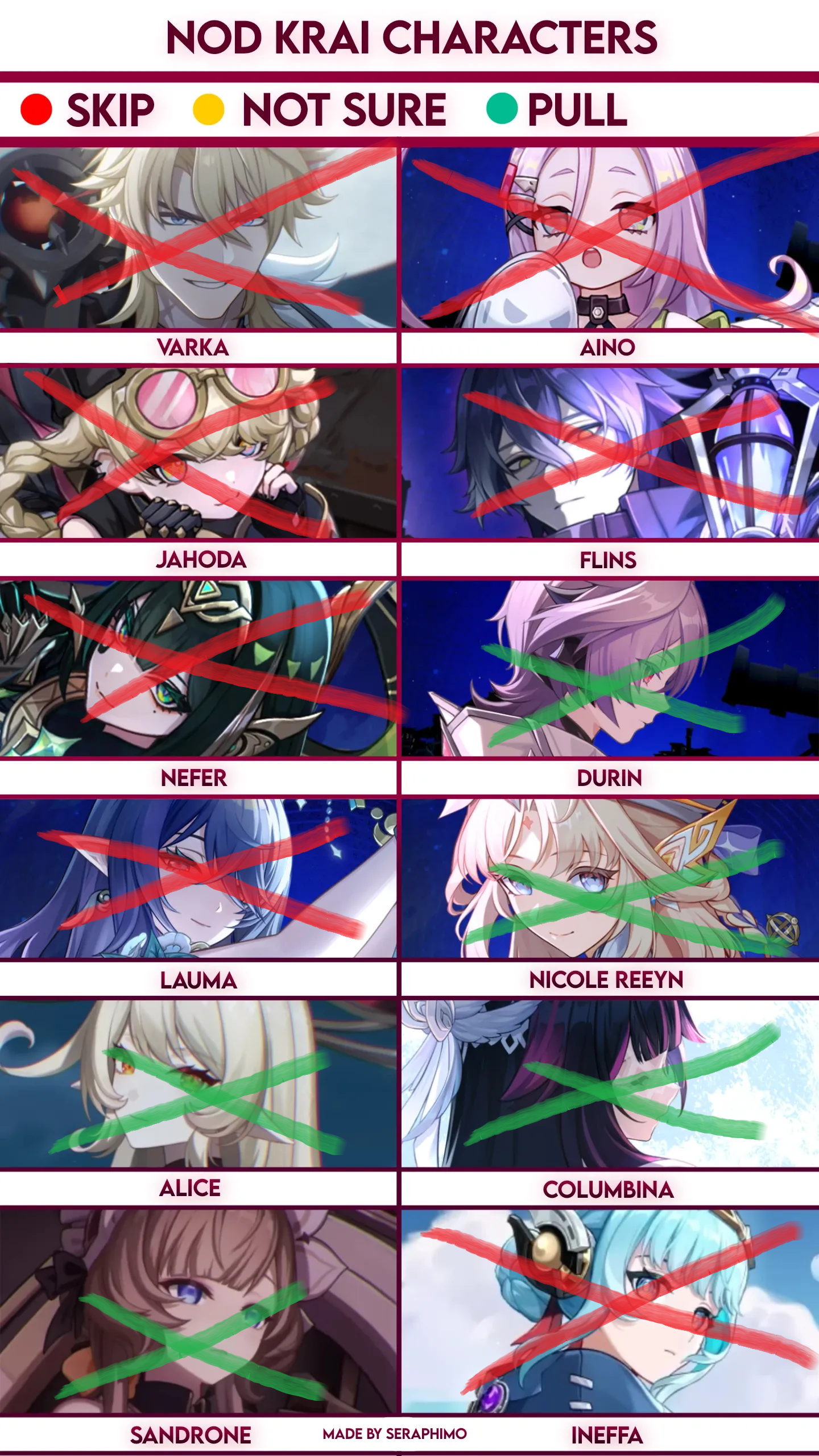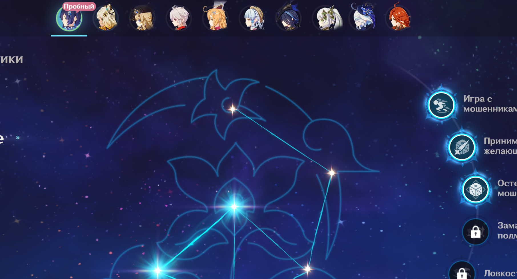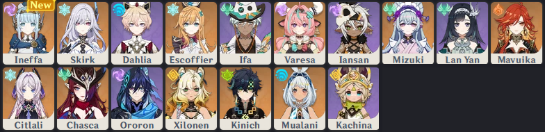 Заметил закономерность. Откройте галерею персонажей и начинайте смотреть начиная с патча Инадзумы батчами по два ряда. Число пятизвездочных и четырехзвездочных персонажей в них всегда (на самом деле, нет, но об этом см. ниже) находится в соотношении 1:1, а именно 4 на 4 (включая стандартных Тигнари и Дэхью, но за вычетом бесплатной Элой.) Это правило выполняется с Инадзумы, работает в Сумеру и даже в Фонтейне (частично). Но. В конце Фонтейна и в Натлане правило полностью рушится - соотношение смещается в сторону 1:3 и причём оно не всегда таково.