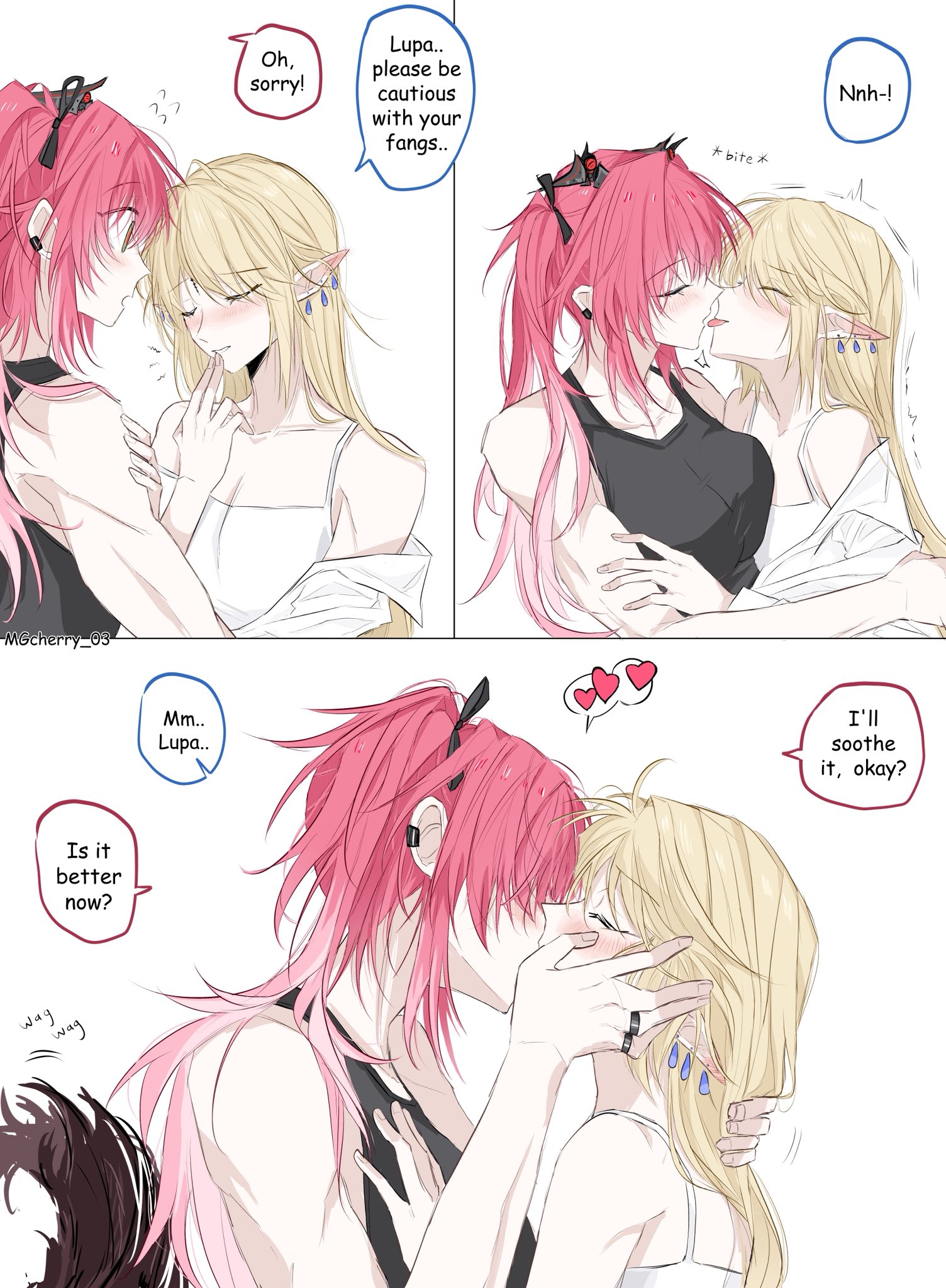 Примерно с 40 секунды: Журналист: Скажите, как вам удалось так быстро вернуться на арену после ухода из команды и найти нового напарника? Лупа: Это была одна из тех встреч, что начинаются с конфликта. Это была одна из тех встреч, что начинаются с конфликта. Это была судьба, предначертанная давным-давно. (загадочно) Лупа: Хм... Впрочем, это уже совсем другая история. Лупа: Как бы то ни было, для меня огромная честь — стать чемпионом плечом к плечу со своим партнёром. Журналист: Ваша частая смена напарников в прошлом была связана с какими-то трудностями? И как вам выступление вашего нынешнего партнёра? Лупа: В прошлом мне не раз приходилось менять напарников. Чаще всего — подчиняясь воле и планам моей семьи. Лупа: Что же до моего нынешнего партнёра... Думаю, вы и сами всё видели. Мы понимаем друг друга без слов и можем по-настоящему наслаждаться каждой секундой боя. Да, путь был коротким, но он принёс мне столько радости! Лупа: Однако мой партнёр не зарабатывает на жизнь боями. Так что, прошу вас, не стоит слишком допытываться и лезть в его личную жизнь, хорошо? Журналист (пытается вставить вопрос): Скажите, а ваш партнёр... Лупа: Так, на этом с вопросами всё. Лупа: А теперь... у нас с партнёром свой собственный разбор полётов. Лупа: В следующий раз я покажу вам ещё более зрелищные бои. Ждите, и не разочаруетесь! * Лупа: Партнёр... Партнёр! Лупа: Пойдём, пойдём скорее! Лупа: А теперь... нас ждёт наш собственный... «разбор полётов»...