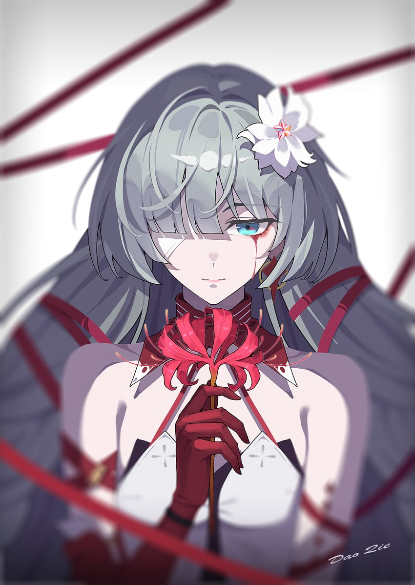 Phrolova returned home after her violin recital to find her family and the entire town waiting to welcome her Then,a "meteorite" suddenly appeared and obliterated her town No one survived except her Afterwards, red spider lilies began to grow across her body,,, & over her left eye