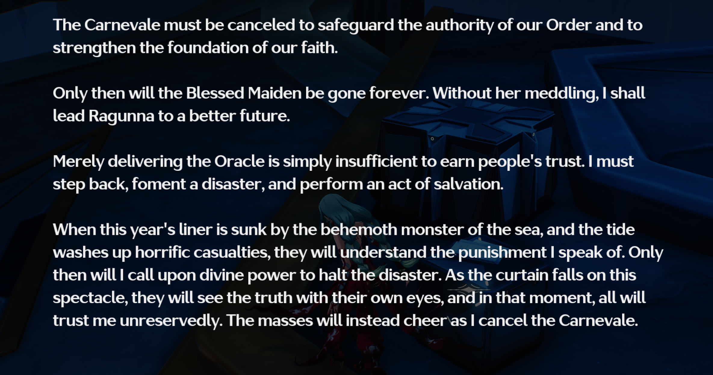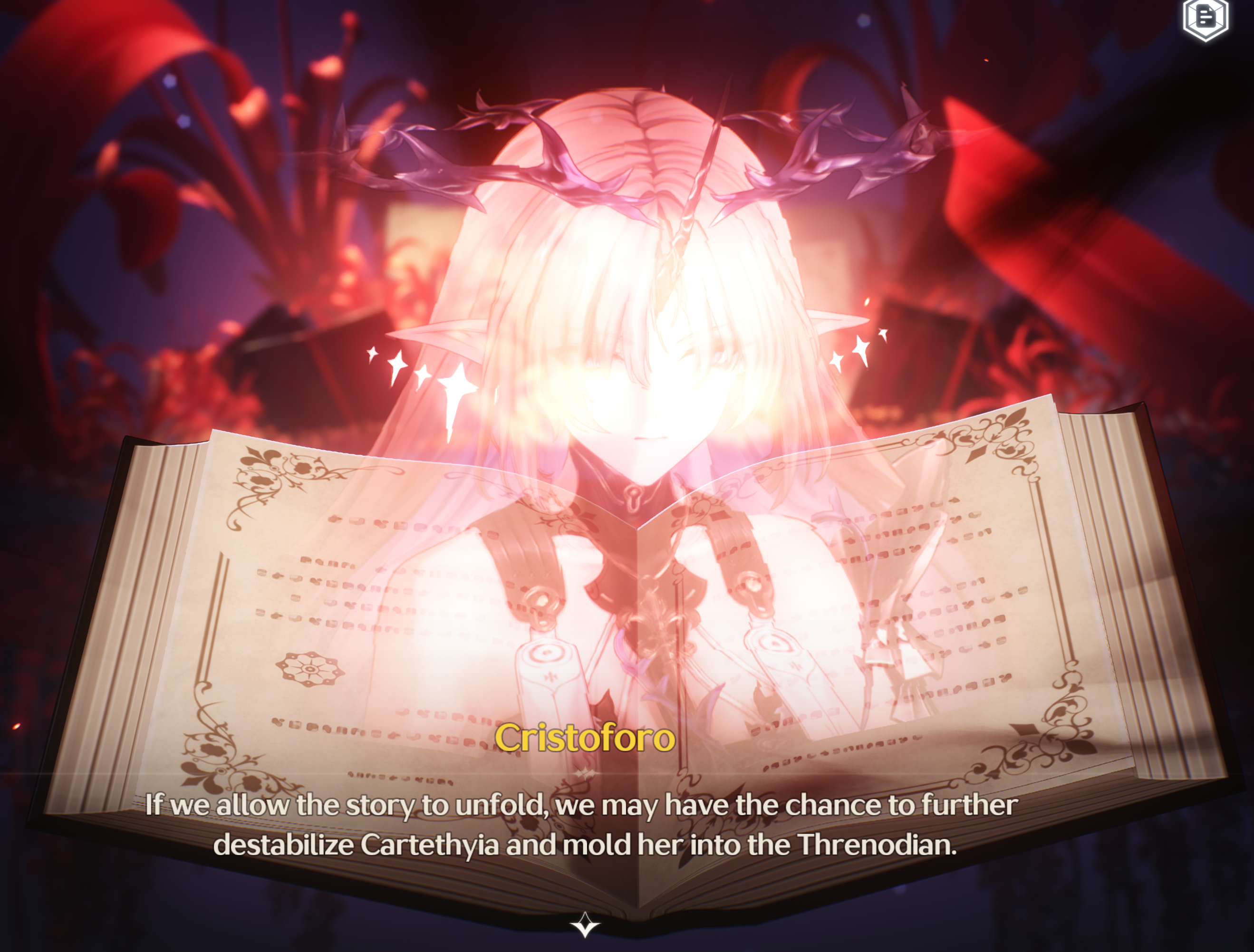 1. Когда мы приплыли в Ринасциту, левиафан напал на нас управляемый Фроловой, но пришедшие на помощь пираты спасли нас и принесли к острову где мы случайно увидели произвол Ордена, а так же встретились с Кристофоро. 2. В ринасците когда ели пицу, внезапно танцор управляемый фроловой вроде как напал на нас, но затем фролова отменила управление и нам пришло видение об Картефии и Авуэлуме. 3. Затем фракцидусы "проиграли" нам и карнавал прошел на отлично и мы получили венок и возможность попасть в неприступный Авуэлум. 4. Мы попадаем в него, спасам Картефию, но это дает толчок к событиям Септимонта и наконец возможности скопить силу пробудившегося из-за наших действий тренодиана и сформировать в Мии кристалл.