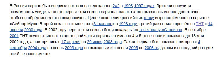 >>5247697 Я несколько нахуй лет подряд смотрел после школы, на ТНТ кажется крутили, ближе к 15:00, смотреть в это время больше было нечего, на СТС уже все заканчивалось и я смотрел Сейлормун..