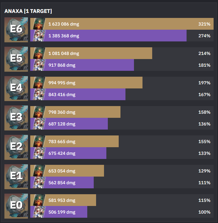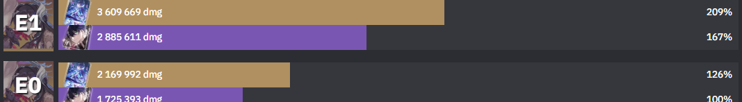 Ща глянул сравнение Е0 с Е1. Пиздец, это небо и земля. Походу на Е0 просто 0 смысла оставлять чара. Забрать сейчас ей Е1, это как добрать ещё одного полноценного дот-тиммейта в пачку не занимая сам слот.