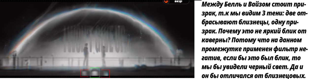 >Но плюс к тому, подумайте, как это символически сочетается с работой героев в видеопрокате с кассетами, которые (поясняю зумерью) как раз-таки надо перематывать к началу после просмотра. Вот еще момент когда чип с феей поглощает эос, просто послушайте звук. И теперь прямо в игре сходите в прокат выключите всю музыку, встаньте около телика на потолке и послушайте, как звучит пленка. Они одинаковы. Это ознаменование о начале истории, о прошлом, котором мы сейчас наблюдаем. Возможно два голоса из тизера с войдхантерами это И ЕСТЬ БЕЛЛЬ И ВАЙЗ. Будущие они заложили для себя из прошлого, чтобы остановить петлю. Просто послушайте как они общаются, их характеры практически совпадают. https://youtu.be/5A6CNwUmScc?t=560