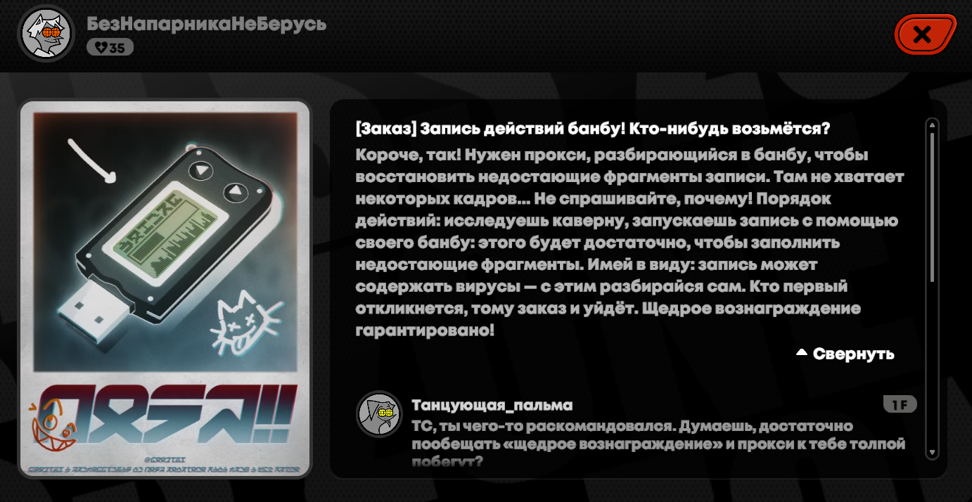 Кстати помните квесты с банбу детективом который спас чела у которого был вирус, кторый ломал ядро банбу https://zenless-zone-zero.fandom.com/wiki/Kami_North В интерноте был пост с двумя ехидными рожицами, которые связаны были с хакерами null face и возможно с хакером spirel paper который этот вирус и создал. Эти лица есть в квесте янаги. Возможно красноволосый и есть spiral paper.