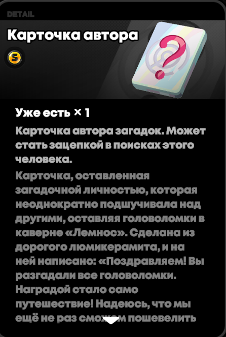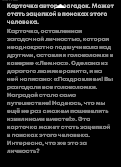 Вот это карточка в продолжении 2.0 сайдквеста загадочников возможно ещё понадобиться и она как-то связана с ИИшкамии и красноволосым >>5463614 . Очень уж форма выгравированная напоминает что-то типо глаза у эфириальных боссов.