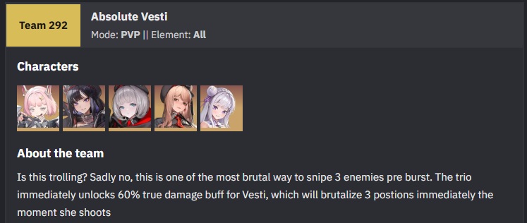 В рейдах, очередной из кторых вот ровно сейчас идёт, тебе надо аж пять команд под пять жёппок. Это просто овер-дохуя даже для вытиранов. Потому что подразумевается что у тебя должны быть пять хорошо собранных команд под разные задачи. Плюс Башни по производителям, там тоже 4 сепарированные по командам башни. В общем, унижение и боль, боль и унижение.