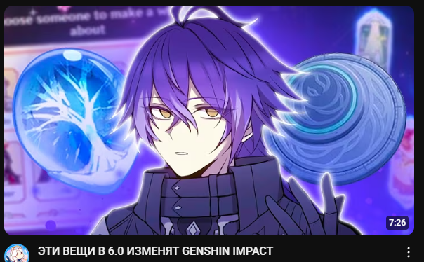 Ну, у меня пока такое получается: 1. Скип диалогов. 2. Отмена расписания работы данжей. 3. Селектор четвёрки. 4. Селектор стандарт-оружия. 5. Расширение баннеров до трёх. 6. Спина Царицы. 7. Больше трёх предвестников в трейлере. 8. Увеличение скорости накопления/лимита смолы. 9. Повышение дропов материалов/больший шанс на полезные статы в артефактах 10. Анонс расширения регионов. 11. Реворк/бафф старых персов. 12. Тени Фанета в трейлере/сюжетке. 13. Близнец в трейлере/сюжетке (не флэшбэки!) 14. Анонс расширения стандарта. 15. Варки в 6.0 не будет. 16. Новости по аниме. 17. Архив ивентов.