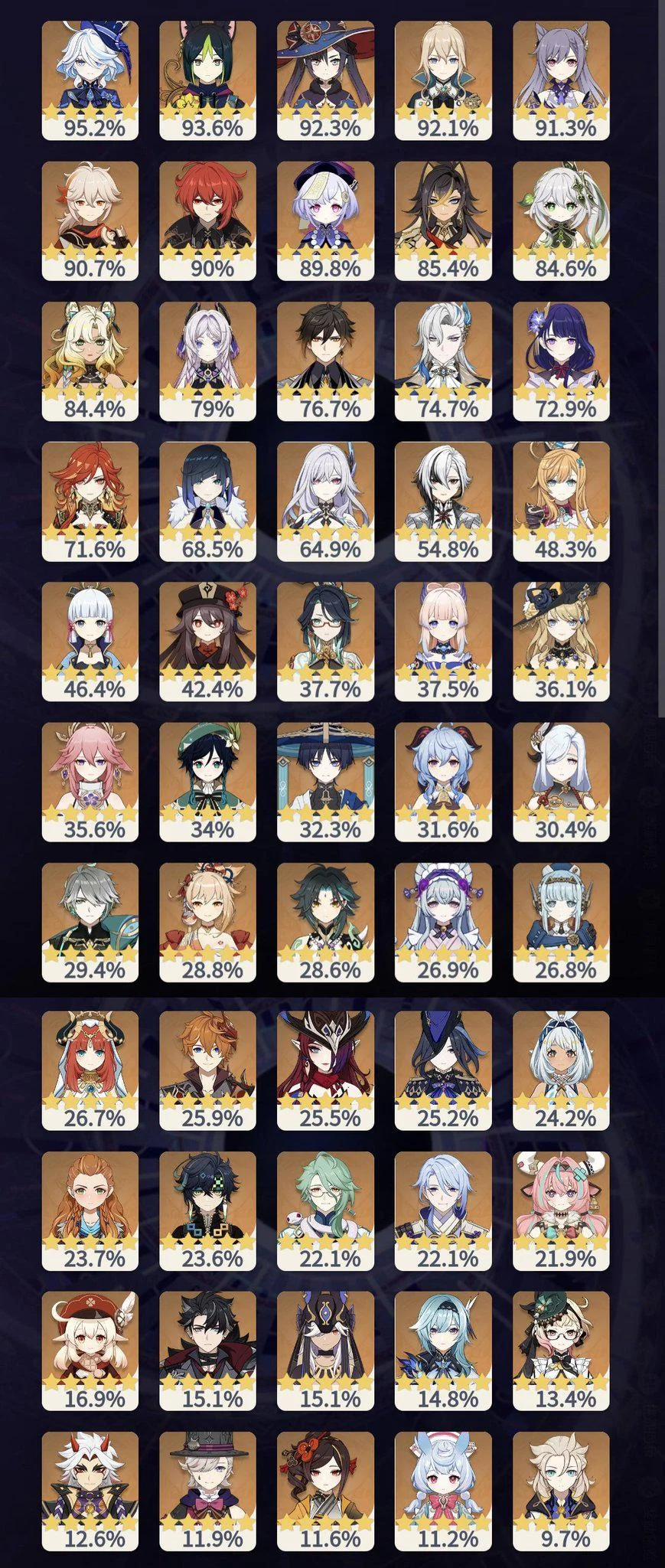 Табличкодебилы пользующиеся табличками оказались метаблядями, которые высчитывали в этой табличке мету, как же так получилось. Ну вот 120к этих метадаунов на игру и наберется всего, реальная стата только у ляо как и с продажами. Хотя учитывая кокблоки, думаю за 36 звезд стата не сильно разная будет, остальным простопохуй либо на 36, либо ваще на дырку.