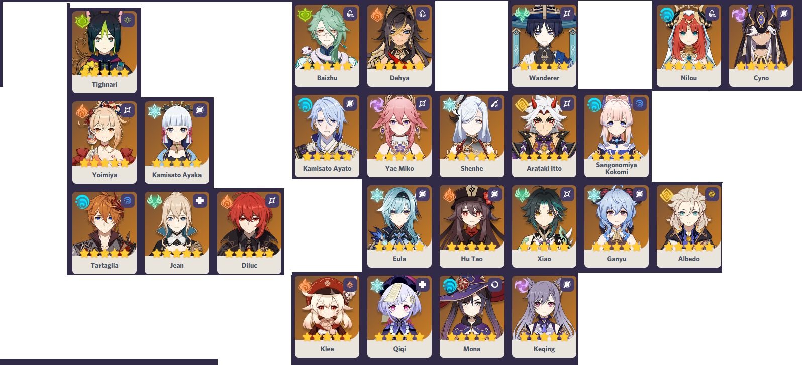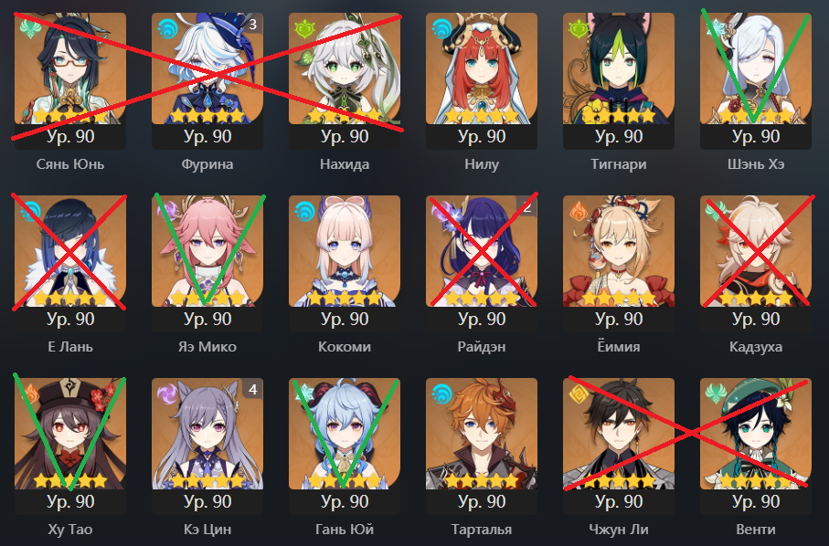 ❣Доступны все персонажи Монда, Ли Юэ, Инадзумы и Сумеру, кроме Архонтов.