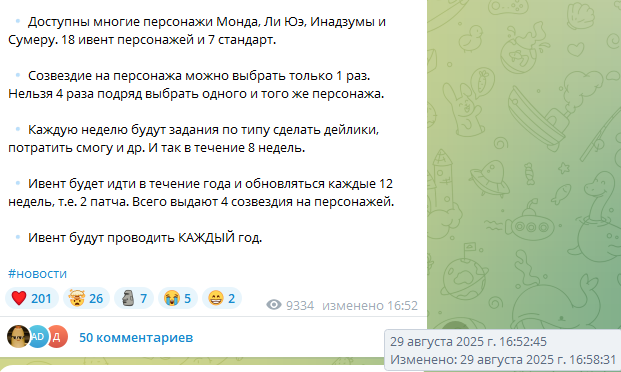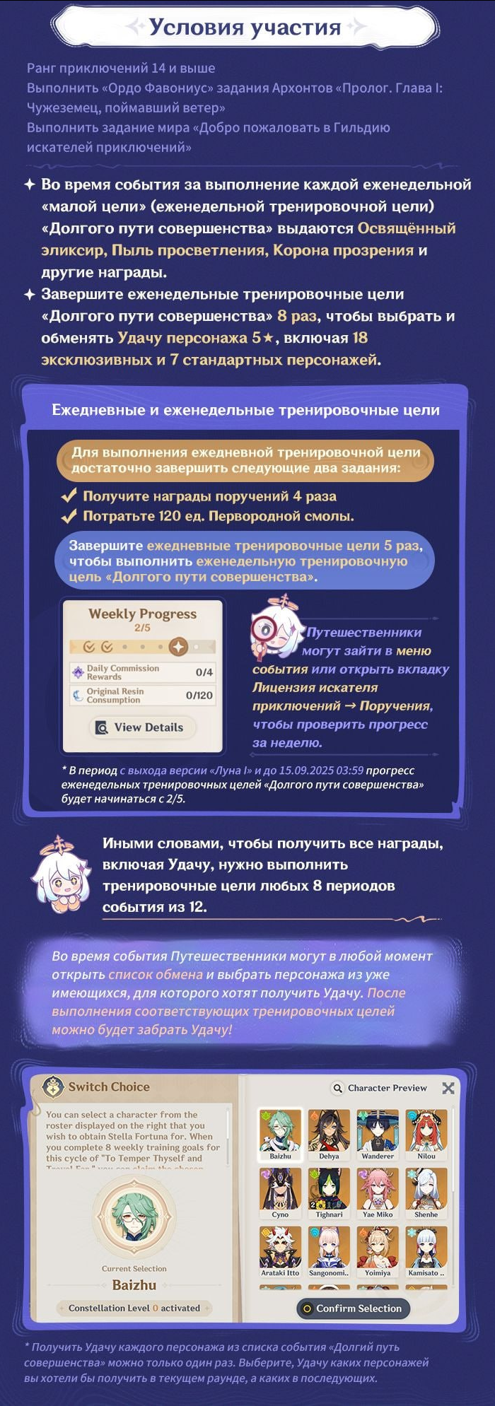 ❣Ивент будет идти в течение года и обновляться каждые 12 недель, т.е. 2 патча. Можно получить 4 созвездия на персонажей.