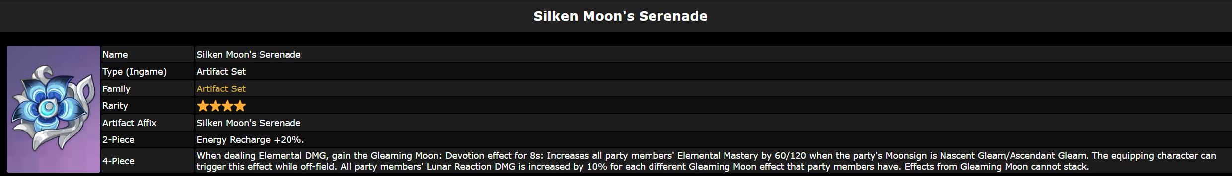 Какой сет артов на Лауму вообще выбивать надо будет? Из новых? Который серенада? Там что-то про лунное сияние написано. Что это за хуйня вообще? Лунный свет ясно, баф в зависимости от кол-ва Нодкраевых чаров в пати. Лунная бутонизация у Лаумы тоже ясно, чисто реакция бутонов если она в пати, а так же одна тычка при нажатии Е. Лунные заряд у пылесоса понятно. А что блять за лунное сияние?