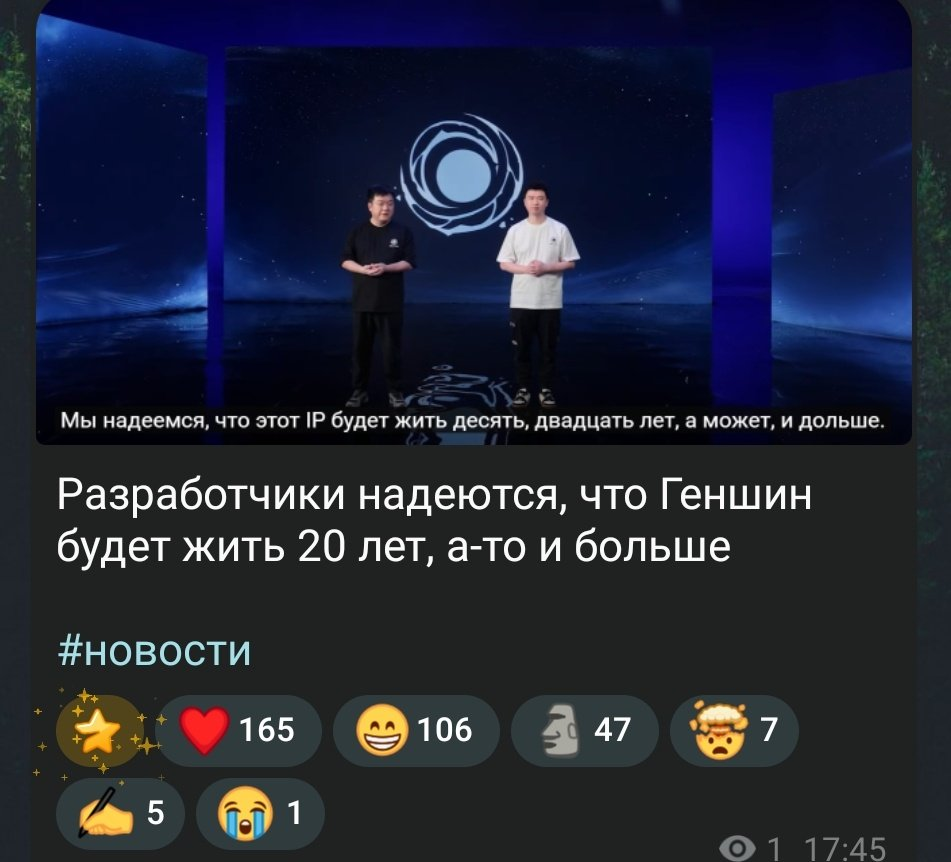 Сушите сухари. Наруто конфирмед. Если вы мечтали увидеть логическую развязку за 6 лет со всеми архонтами, предвестниками и селестией, то вот вам 20 лет. А когда 20 лет пройдёт вы будете совсем колясами, разглядывать витрину со своми 1500 персонажей и рыдать как проебали время пока еще могли действовать.