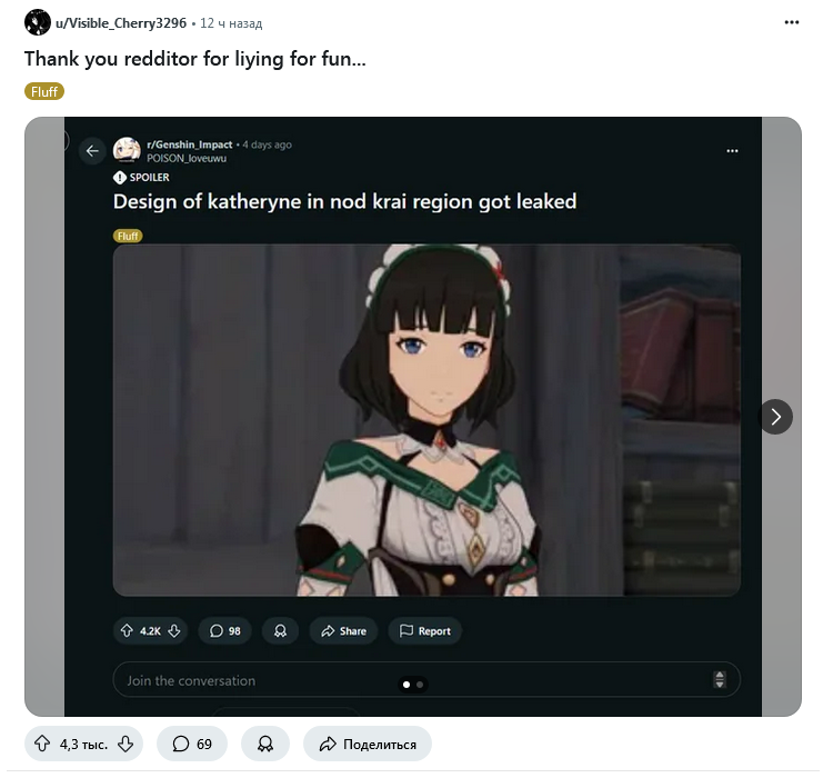 Похуй Главное чтобы р34 с Айно наделали Хотя надежны невелики если убрать иислоп то за весь катлан буквально артов 20 наделали... Спасибо хуангу без него р34 по геншину бы совсем сдохло