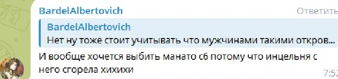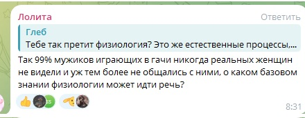 Представьте, чтобы все анончики сидели в телеграме условного дипспейса, и срали про то, как же там много мужиков, одни слащавые педики, какой-то фетишистский кал. Эх, если бы там были девоньки( сижу только ради геймплея!