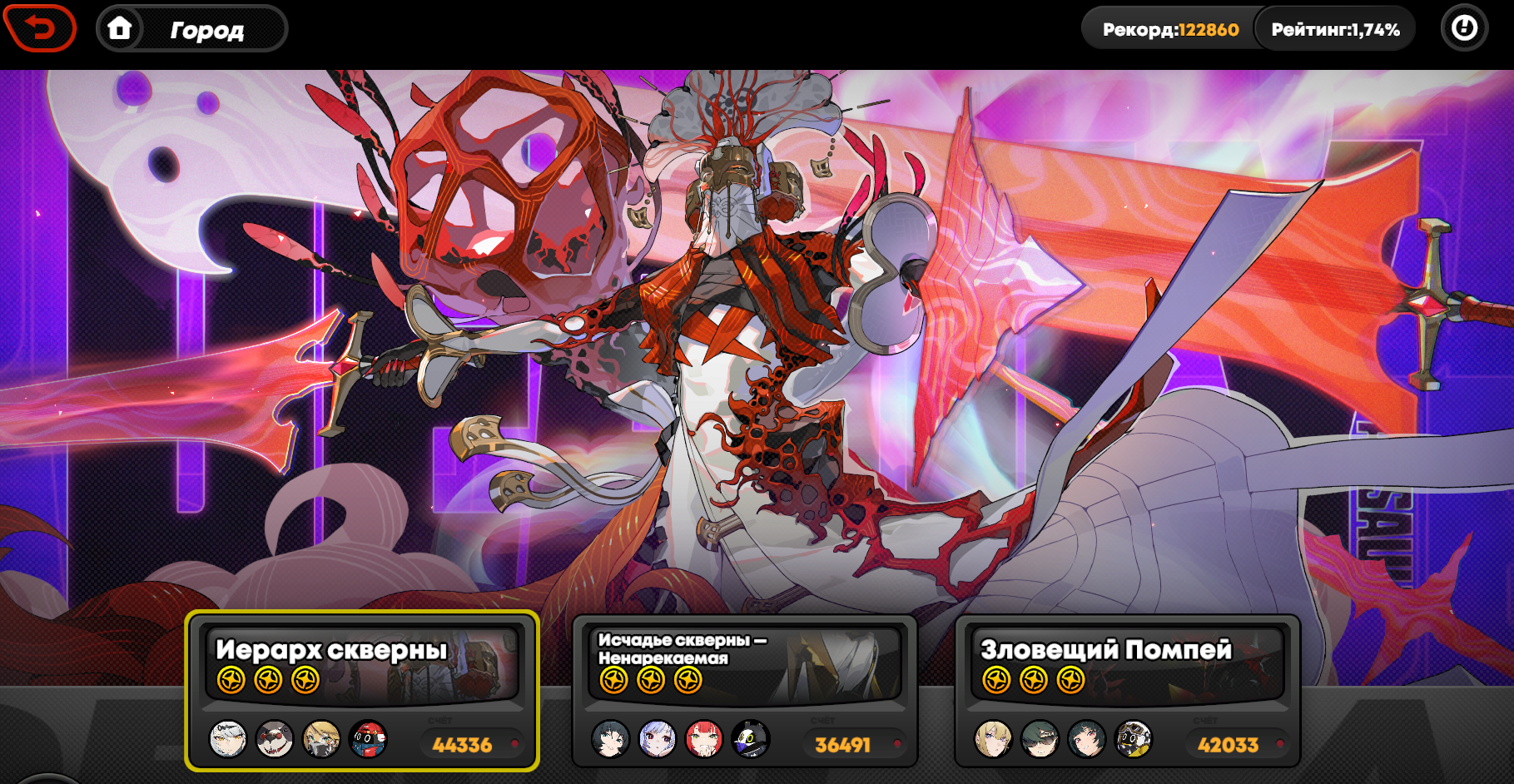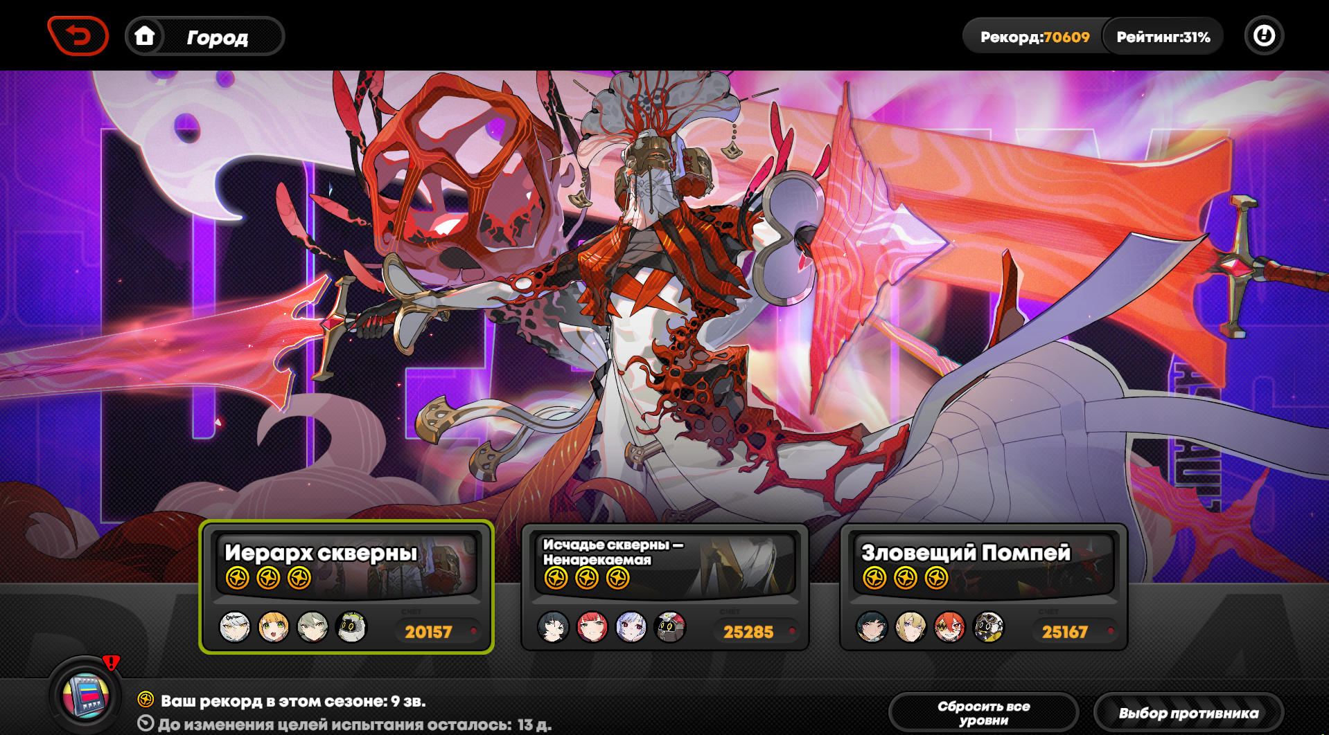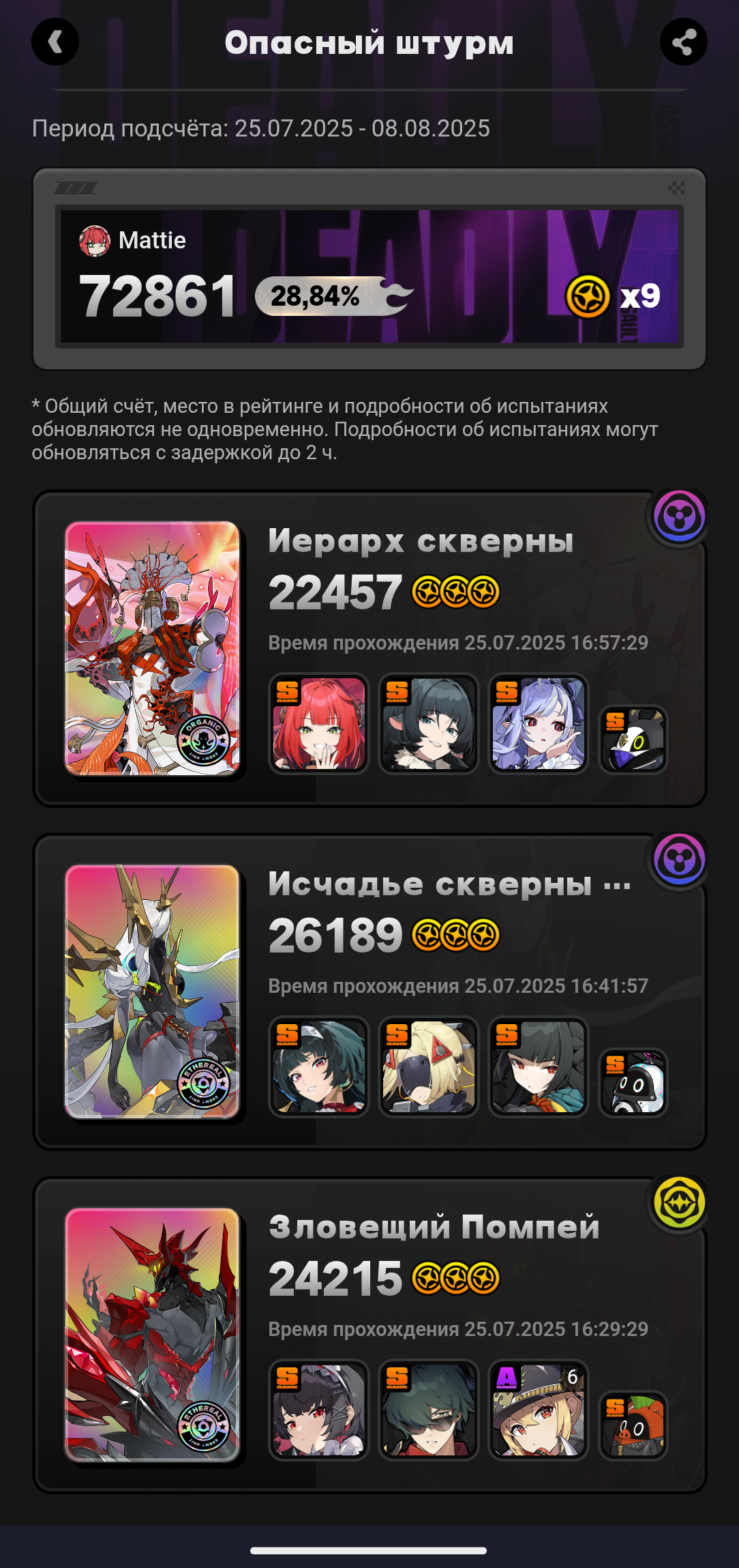 Пробежал штурм без траев, причем в этот раз без Мияби. Вжушкнул, что рейтинг открывается лишь на 9 звездах. Может потом еще потраю иерарха, чтобы добить звезду.