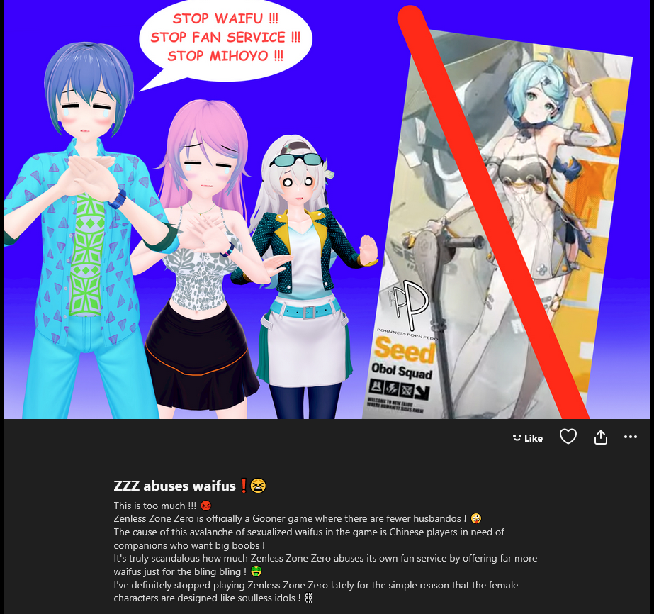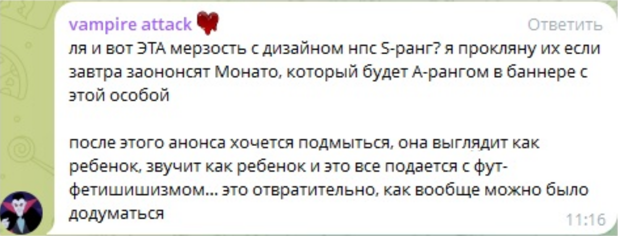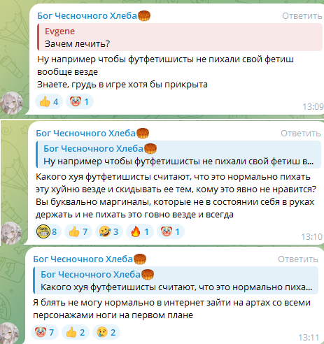 Итого если вы молодой парень играющий в гачадрочильни, и не стелящийся перед селедками ирл, вы для них буквально хуже чем серийный убийца, или сам гитлер нахуй, тут даже уже не о запретах речь, они вас натурально будут хотеть захуярить, потому что вы прете буквально против их естества