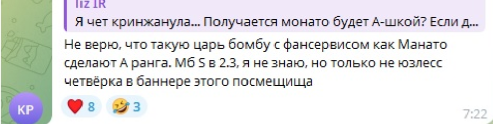 Синематики должны дополнять игру, а не быть отдельным контентом. Ну добавили бы его в игру, как с Касторией сделали. Да плиз, никого они уже не будут раскрывать, потому что они уже продали этих персонажей, а ещё 4 уже на подходе. Хср в этом плане проблемный, нет времени на всё говно и нужно радоваться если твоя любимица получила хотя бы пару строчек в ивенте. Если бы это было, то хейтеров бы разорвало сильнее. По тем же причинам что я выше писал - она воспринимается как кукла, у которой в жопе рука китайца и он тебе чревовещает комплименты. Не очень привлекательная штука, хотя симпы бы обоссались от радости.