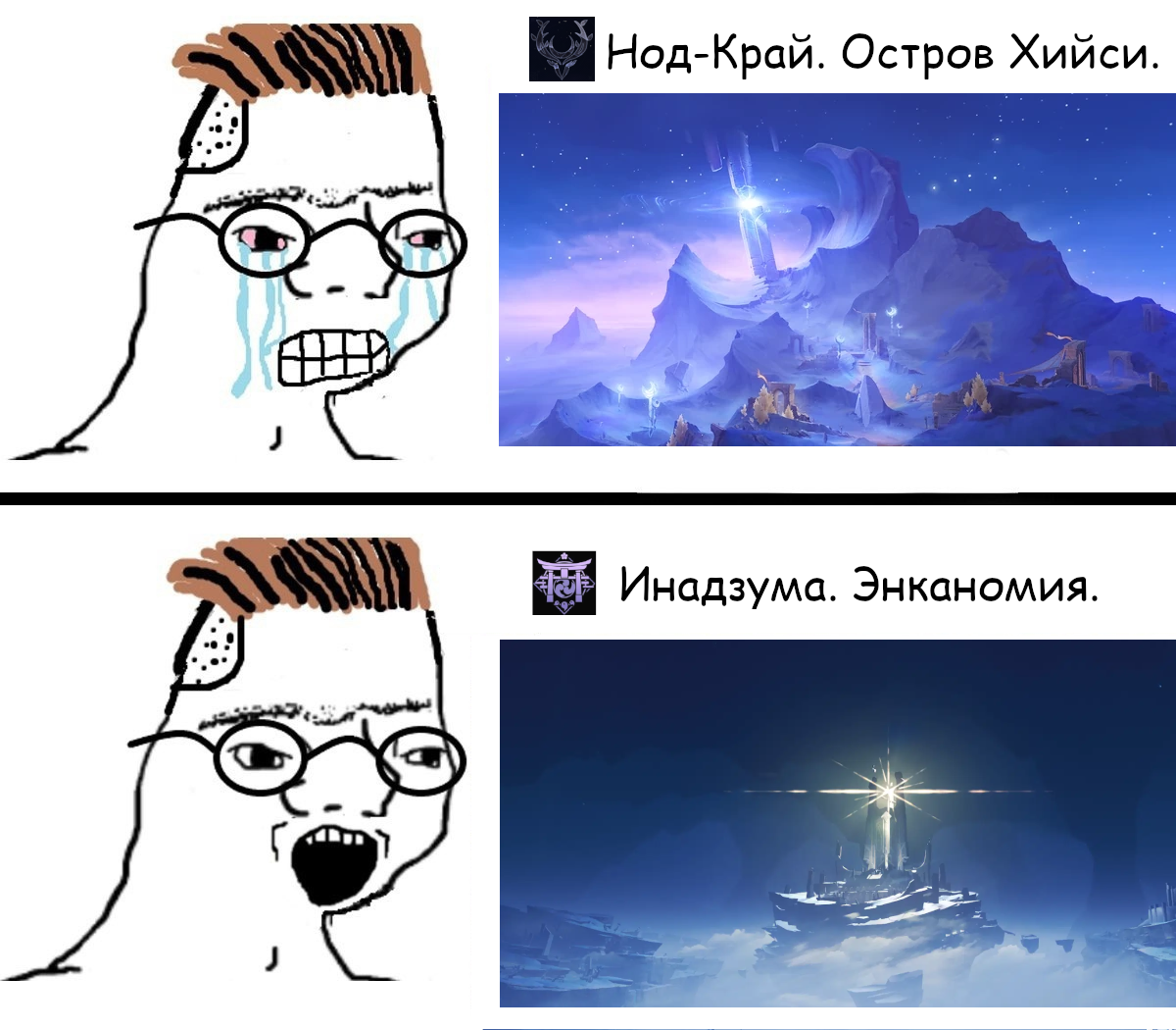 Как считаете что хуже - смерть франшизы или поддержка на аппарате жизнеобеспечения как можно больше в худшем зомби виде? Вот как вселенная Гарри Поттера закончилась на 7 книгах, а если б дальше писали, то я не знаю, попахивает калом. Че там еще можно было рассказать? И вон даже ремастер ГП снимают, по сути то же самое, но хуйня для зумеров, без души. Или к ВК и Стар Ворз сиквелы сняли, хуйня хуйни же. Иногда оно просто должно умереть, чтобы в сердцах фанатов расцвести еще на десятилетия. А Ляо нам 20 лет дарит, ну спясибо, наверное. Я на релизе фантазировал как отдельную сингл игру сделают про приключение мондовичков, чтоб всякие нпс включены, Айлин, Тимми и т.п., а манга была, но это уже кажется мега копиумом. Не будет. Нужно штамповать больше лиц, имен, которые все забудут сразу, на 1 сезон.