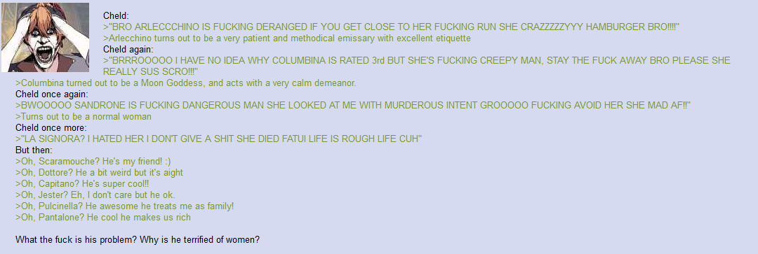 >>5488282 знаешь, после этой сцены с девочкой в ласт задании чмони, где чмоня внезапно понял что хилчурлы как бы могут быть красивыми тяночками под проклятьем, я в неком недоумении чмоня и так моральные качества гопника имеет, но тут он реально в моих глазах упал