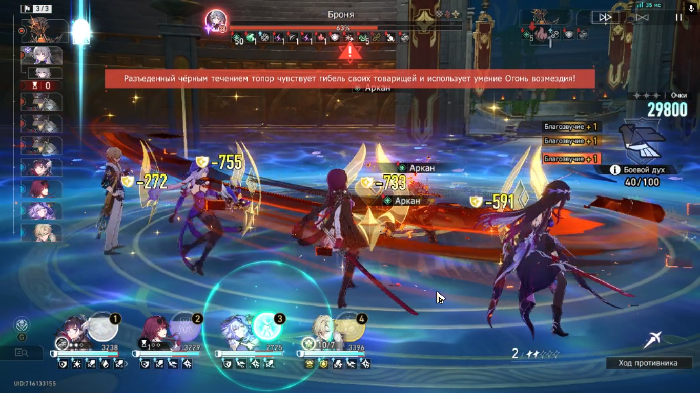 Далее идет более менее удобный, хоть и дрочный геймплей с е0 Зарянкой. Урон в моменте больше, но Сейба почти не ходит, а Зарянка плохо набирает себе ульт