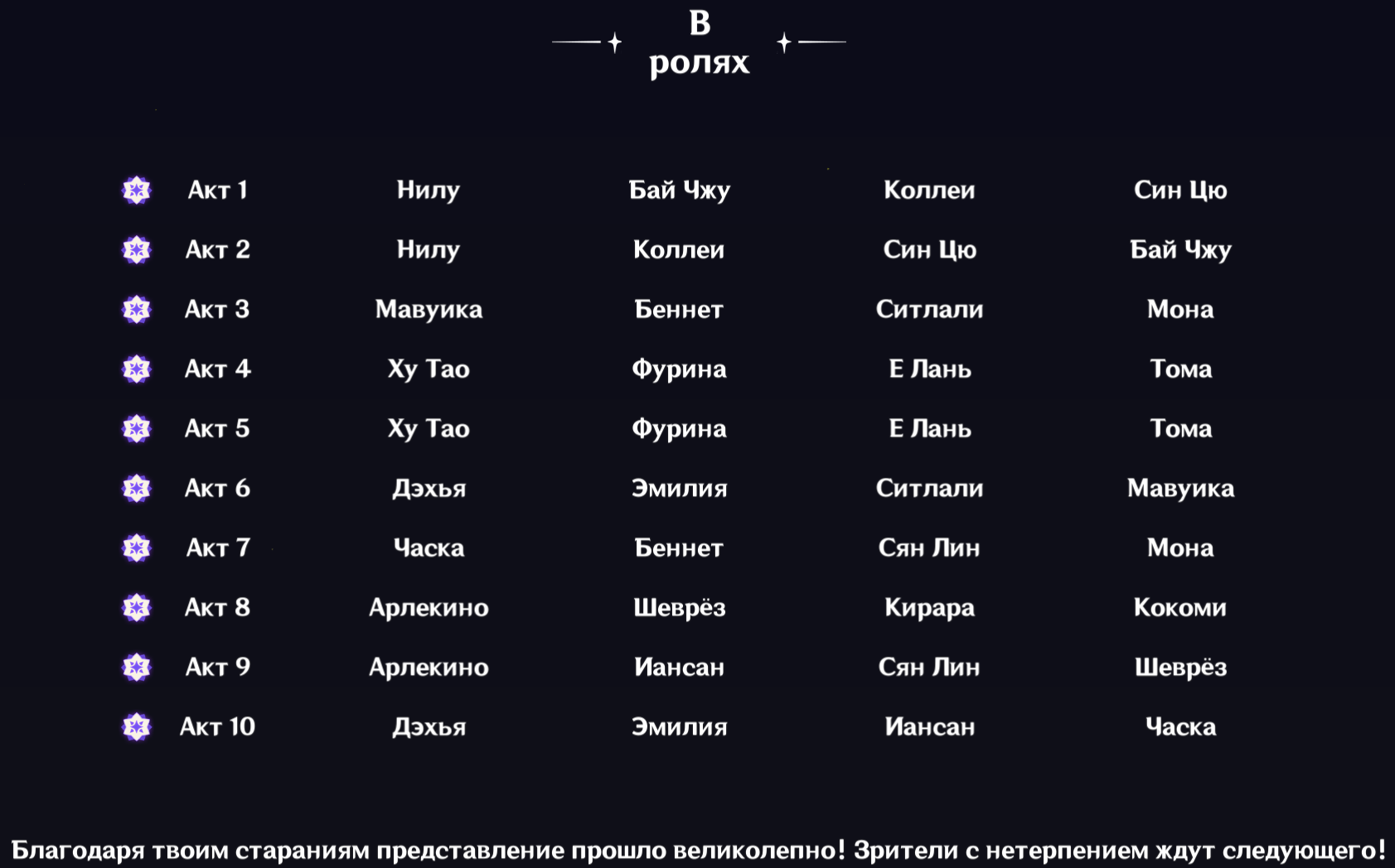 ✦ Показать персонажей картинкой https://akasha.cv/ ∙ https://enka.network/ ∙ Гайды https://t.me/genshin_academy/https://keqingmains.com/