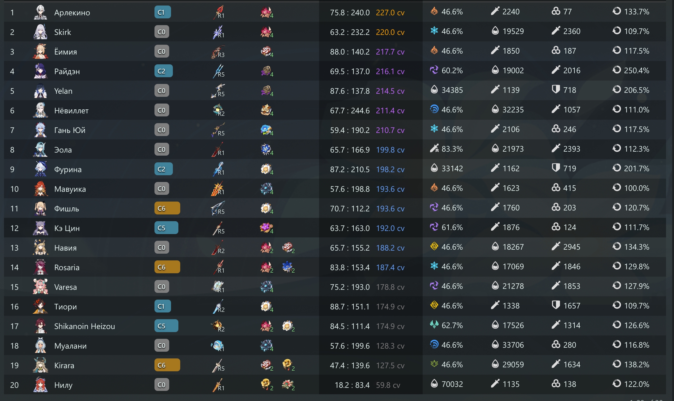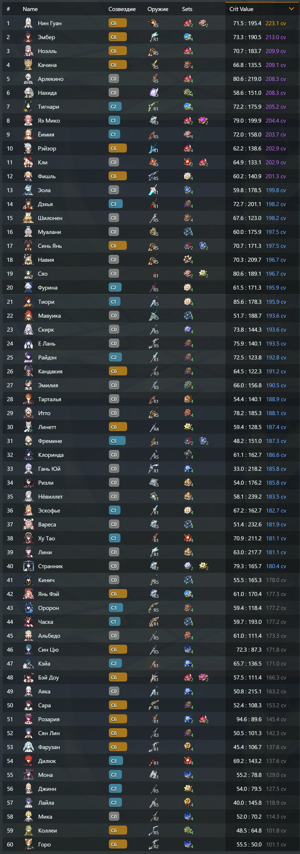 ✦ Показать персонажей картинкой https://akasha.cv/ (включая лидерборды по сборкам персонажей) ∙ https://enka.network/