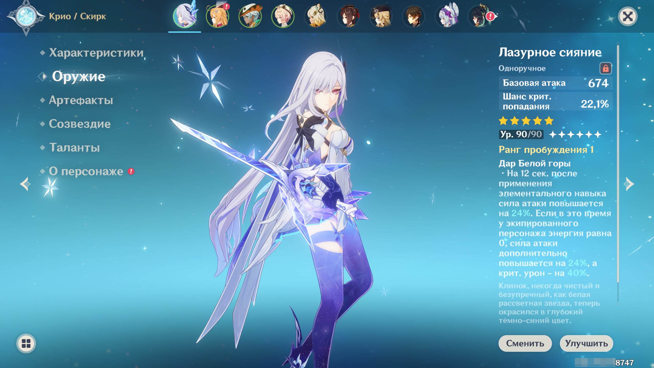 А последняя хрень под Скирк сделана. Аяка играет от заморозки, а босс не замараживается!!! Нужно комплекты менять на дпс. А у меня нету трёх комплектов гладиатора на кш/ку чтобы всем хватило.