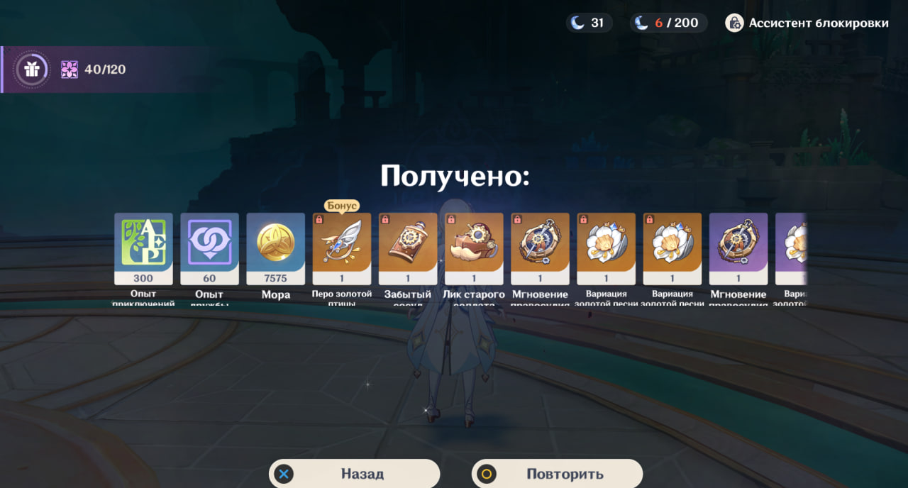 Ну и кал ваш новый режим, хотя бы арты можно нормально пофармить. Олсо, я так понимаю, если 18 перьев потратить, то у тебя ВСЕ артефакты будут лучше точиться при перебросе?