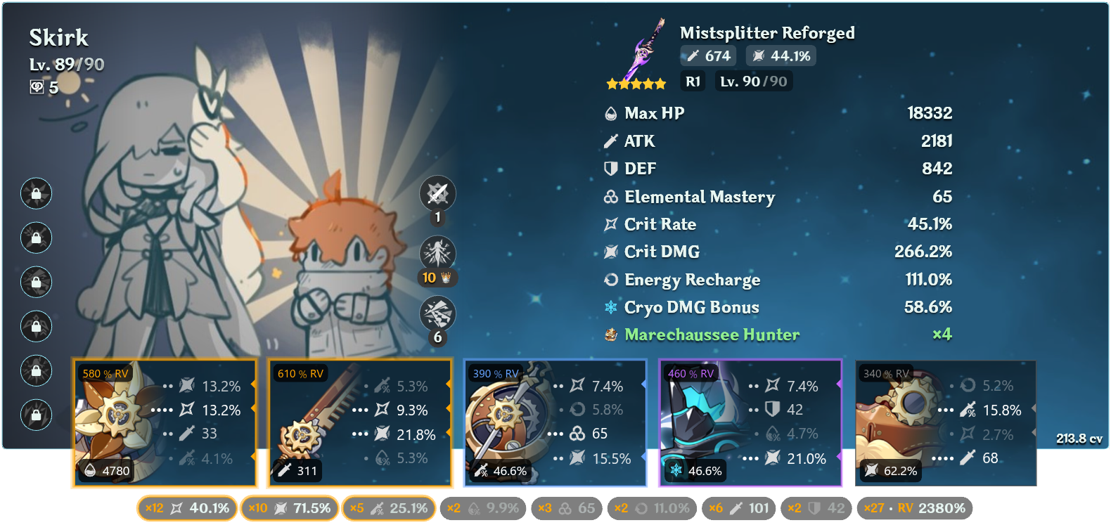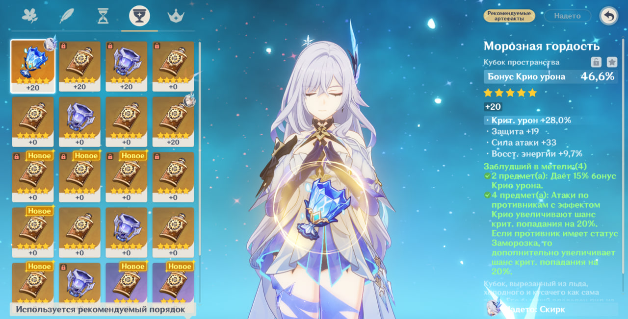 Я вот думаю, что если вот это все собрать на скирк, а в команду взять лайлу со стойкостью миллелита? +100% урона атаки из воздуха для обычных и заряженных, щит = неузявимость = бессмертие, так еще и 16% бесплатного крит шанса! Это же прямо мощнее, чем 15% крио и 60% атакам от сета скирк. Какие поводные?