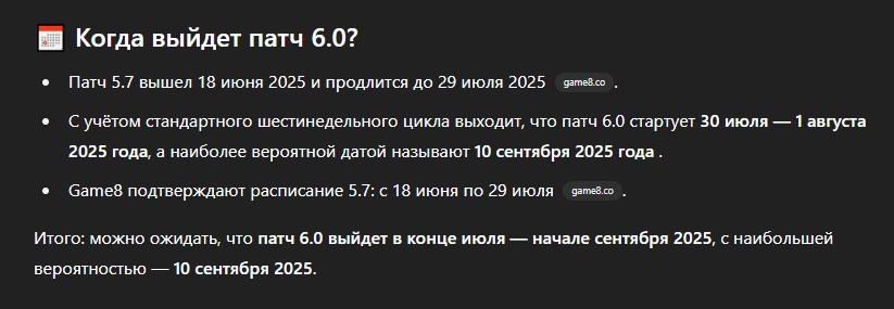 Масложопы писали, что-де в 6.0 Хойо доделают карту и выйдут все мёртвые локации типа Тернового порта и Черногорской кузницы, но после Пепельного моря я просто в это не верю. А если мы смотрим на Натлан, то вся карта и все квесты зачищаются за пару недель неспешной игры. Т.е. самое то - вкатиться за три недельки до Снежной и неспеша навернуть всё вышедшее ранее.