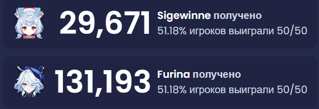 Среди взявших платину самый популярный персонаж — Фурина. У неё всего 56 конст (!) Это не считая с0 Фурин. Их всего было 32 штуки. Т.е 32 + 56.