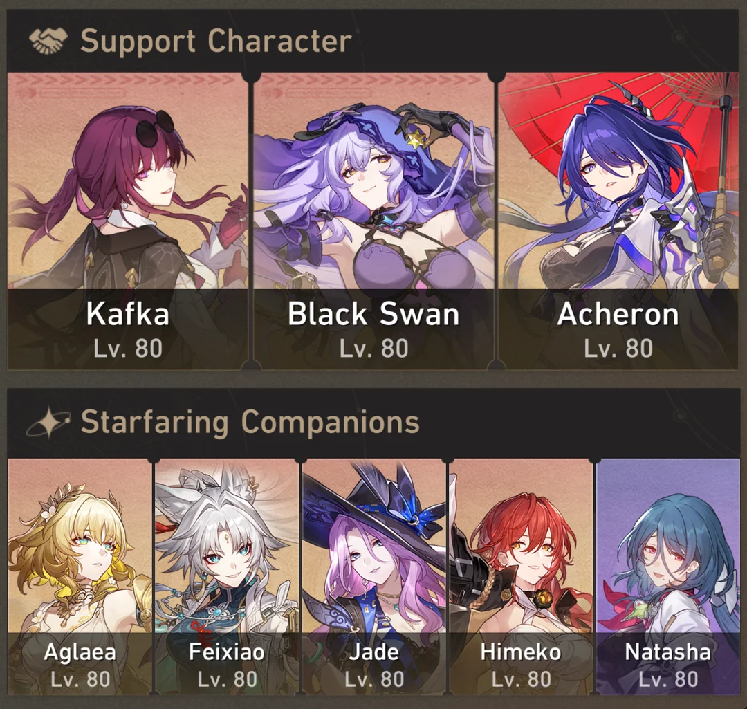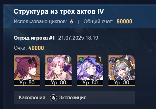 Выкрутил Керидру и Волчику заслуженную Е2. Потестил и по итогу доволен: ахероновская вайфу-пачка наконец смогла набрать 40K в вымысле, и в остальных режимах уже вполне приемлемые результаты - универсальная пачка, вайфу-гейминг жив! Ну и Керидра неплохо бустанула базовичка Анаксу - уверенно кроет контент на Е0.