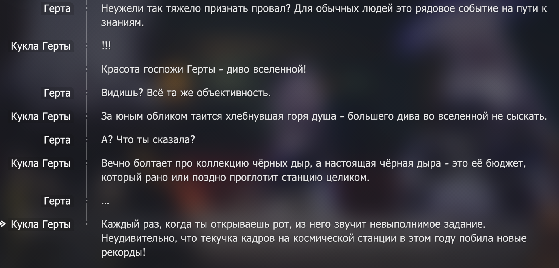 Альтушка яндерка думерша мой идеальный типаж. Как же мне она нравилась... до в3. Увы, бездамажным каличам не место на моем акке, не стоит у меня на бесполезность. А вот кирена мммм... ну и что, что у неё уже было 10 партнеров до меня, к троим из которых она продолжает заходить на чай, вы дамаг её видели? Как смотрю сколько она энергоса заливает, сразу возбуждаюсь. Вот это моя жена. А всякие мелкие шалости, вроде пристрастие к ббц можно и простить за такую ценность для аккаунта.