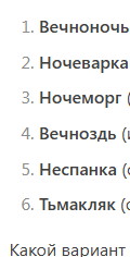 >>5349049 и в итоге его так никто не называет никогда. Отличный пример, что нужно не забывать о юзабельности имени. Вечной ночью никто бы не стал ее звать, вот тьмой или теменью вполне будут