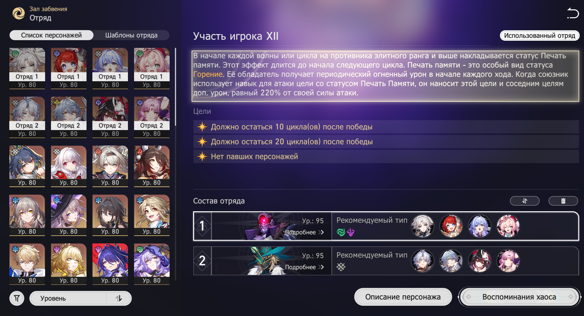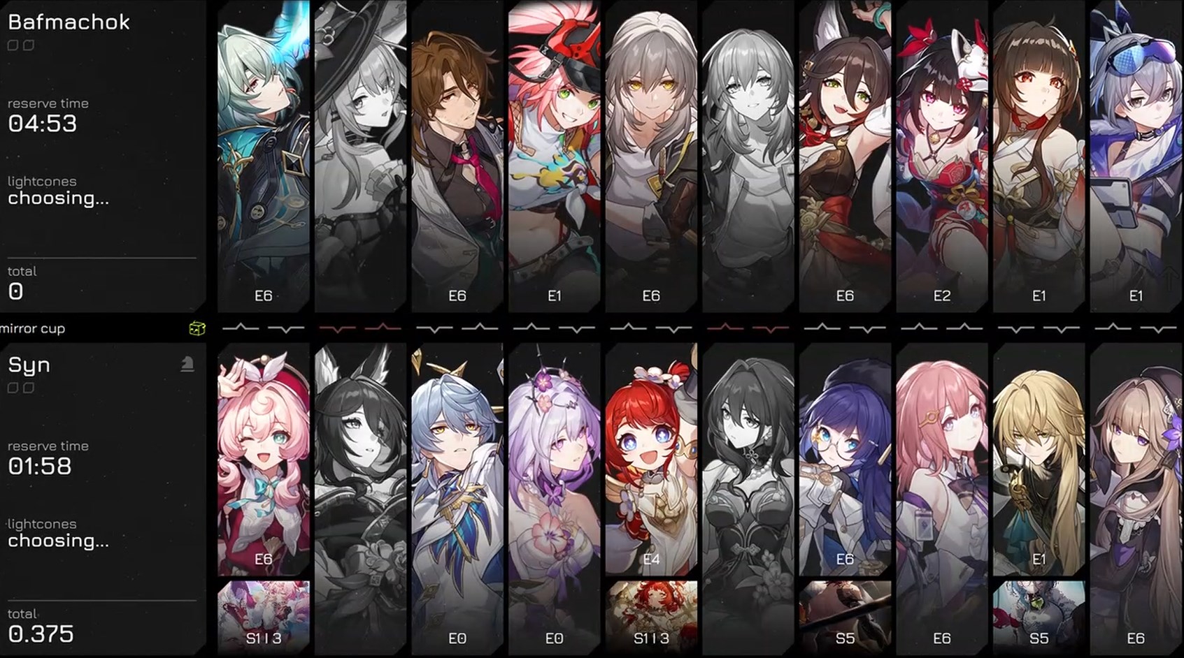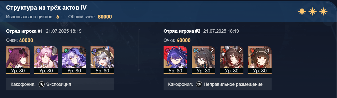 В этот раз зеркало не сложное, Фаенон порадовал быстрым прохождением своей половины. Ахерон тоже хорошо себя показывает не зря крутил для неё Цифер с сигной. Фу Сюань хорошо выполняет свою роль несмотря на то что в треде считают её плохим сустейном для нынешнего зеркала.