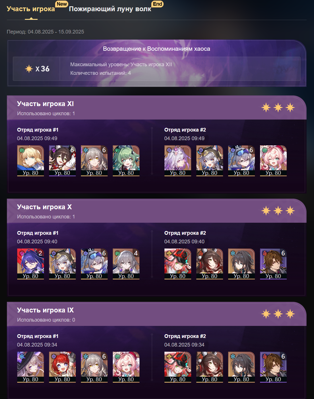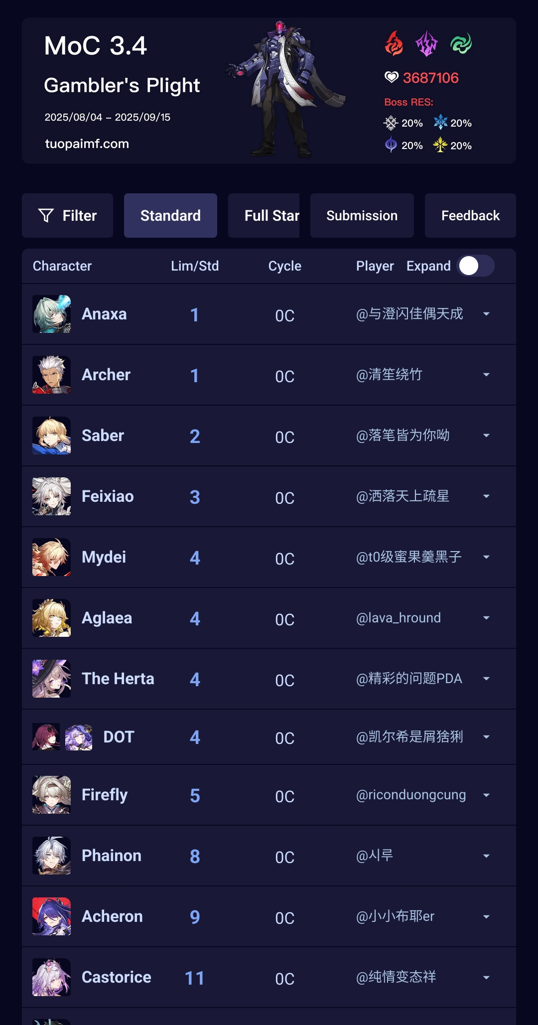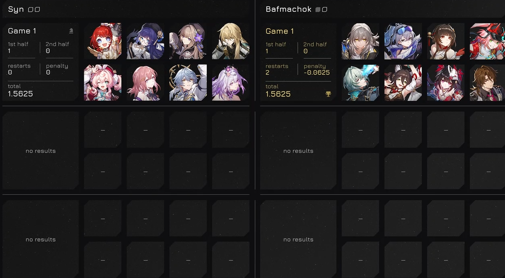 В этот раз зеркало не сложное, Фаенон порадовал быстрым прохождением своей половины. Ахерон тоже хорошо себя показывает не зря крутил для неё Цифер с сигной. Фу Сюань хорошо выполняет свою роль несмотря на то что в треде считают её плохим сустейном для нынешнего зеркала.