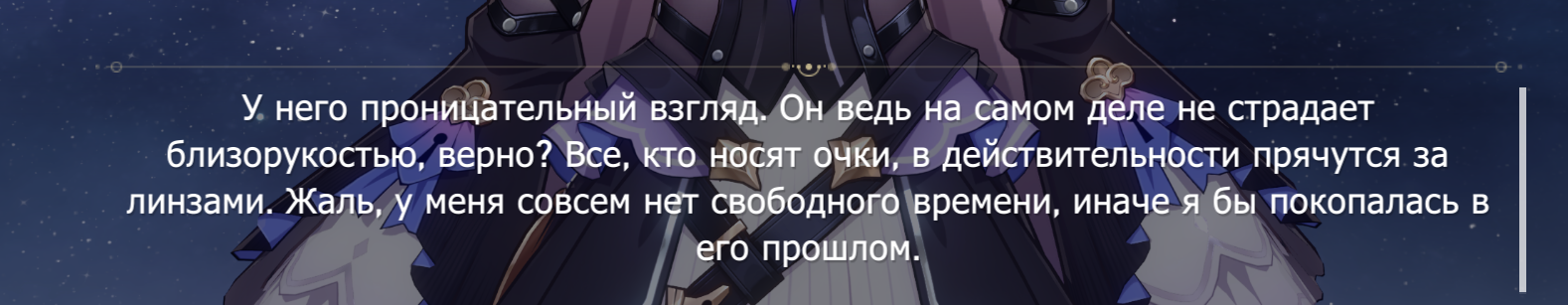 Зато остальной женский каст вообще хуй на ГГ забивает. Абсолютно безюшковый. И при этом даже чего-то серьезного с Киреной нет. Постная хуйня, словом...