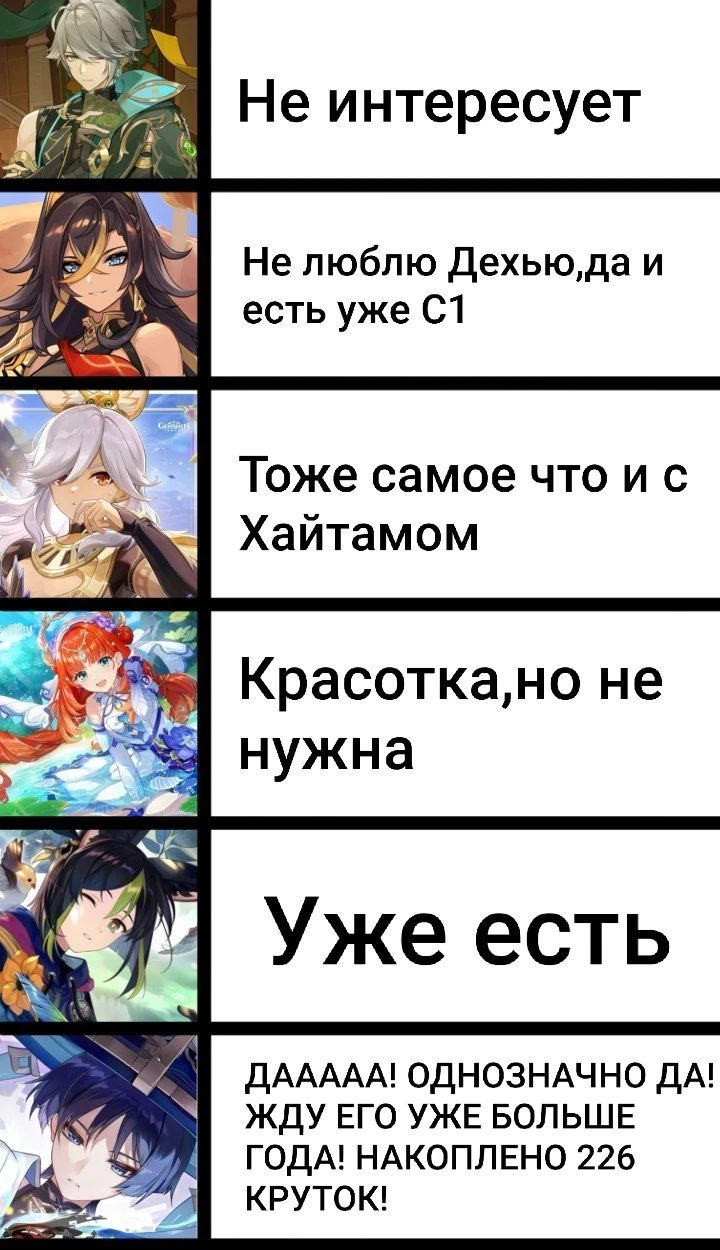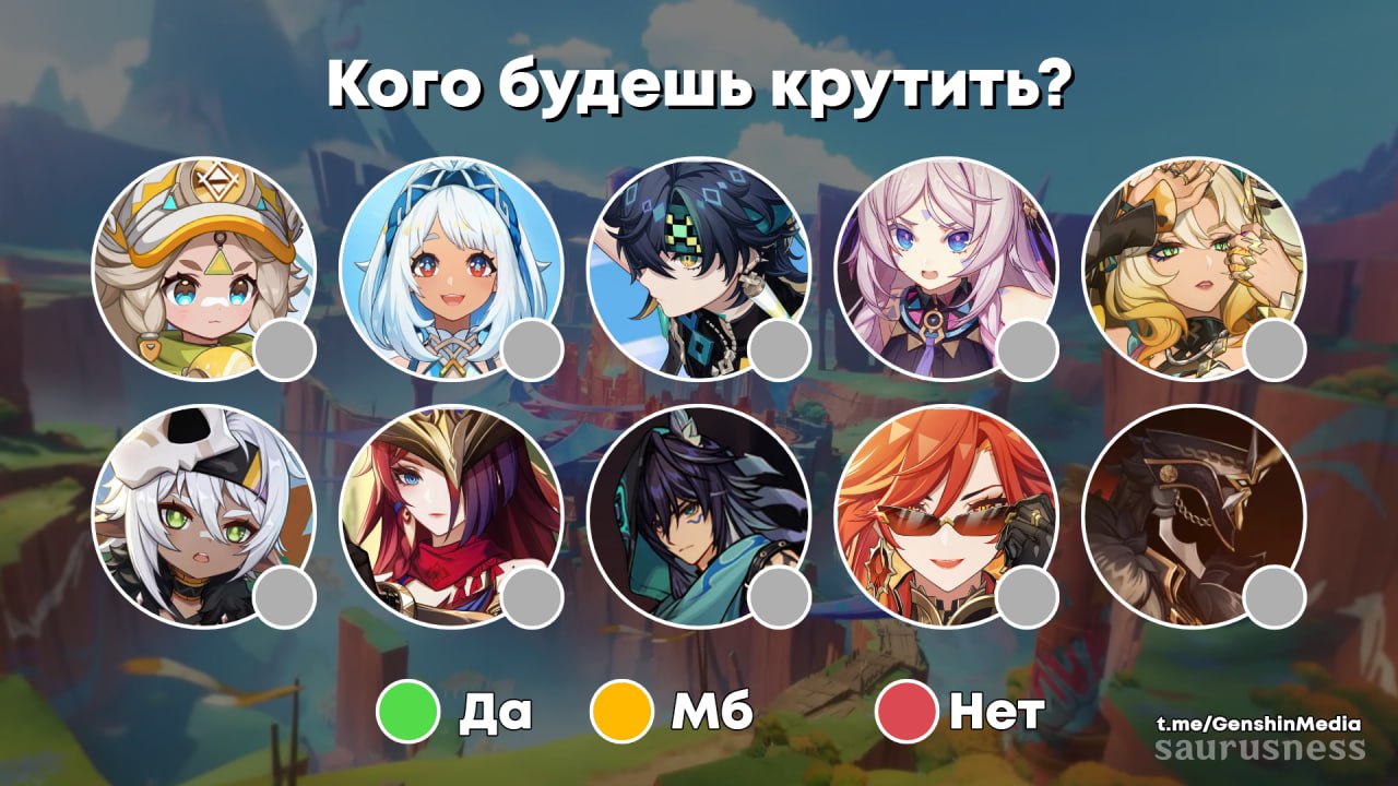 Из не-натлана когда-нибудь выкручу Сяо и Кли, а также жду Дилюка.