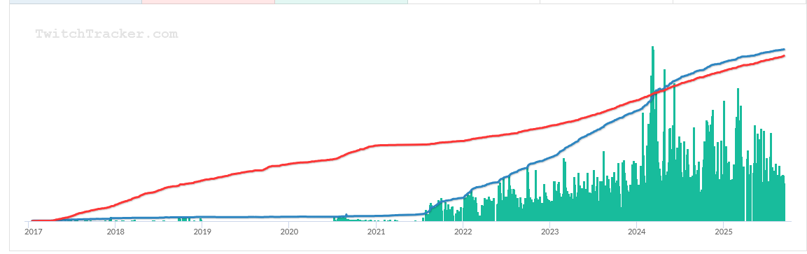 5 лет назад такого стримера по сути и не было, так что это все сказки для залетышей. В 22 году смотрел 100 человек. Один раз пик онлайна в один день случился 4,5к на абисс капе. Все остальные дни за последние пару лет у него онлайн 500-1500 человек.