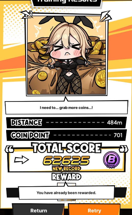 Бля, какое гавно эта мини игра я хуею... Ладно что управление каменное, на это похуй, но почему можно цепляться только за Люстру блять? че это за тупая логика? Буквально каждая пропасть и я тупо падаю, потому что не успеваю зацепаться. Хуита какая-то. Просранный в пизду эвент крч с этими кроликами. Скин 60$ зацензуренное гавно, миниигра кал. Вот Аде и Милк получились ахуенными, еще и скин на Бей с Эксией неплох(хотя у Эксии зачем-то жопу огромной сделали, а она должна быть тощей пиздой)