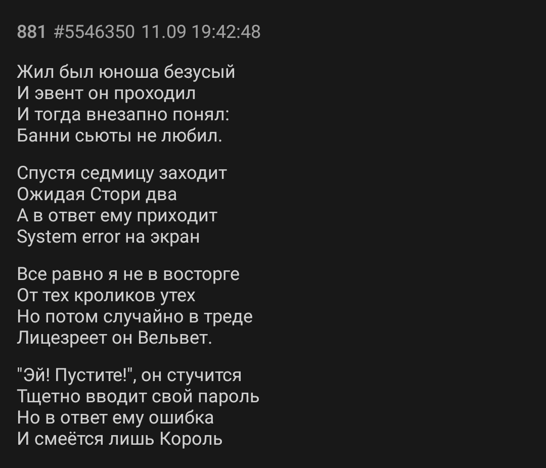 На фоне прошлого унылого говна данный ивент мне показался даже хорошим. Полапал кроликов хоть разок и на том спасибо, Ким. В сурвей всё равно тебе насру, чтобы не расслаблялся.