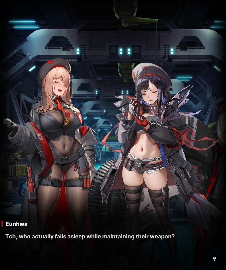 У Тактикал Унфы интересный бонд. На самом деле не происходит ничего особенного, но приятно видеть как изменяется её отношение к нам и отсылки к absolute shit версии бонда.