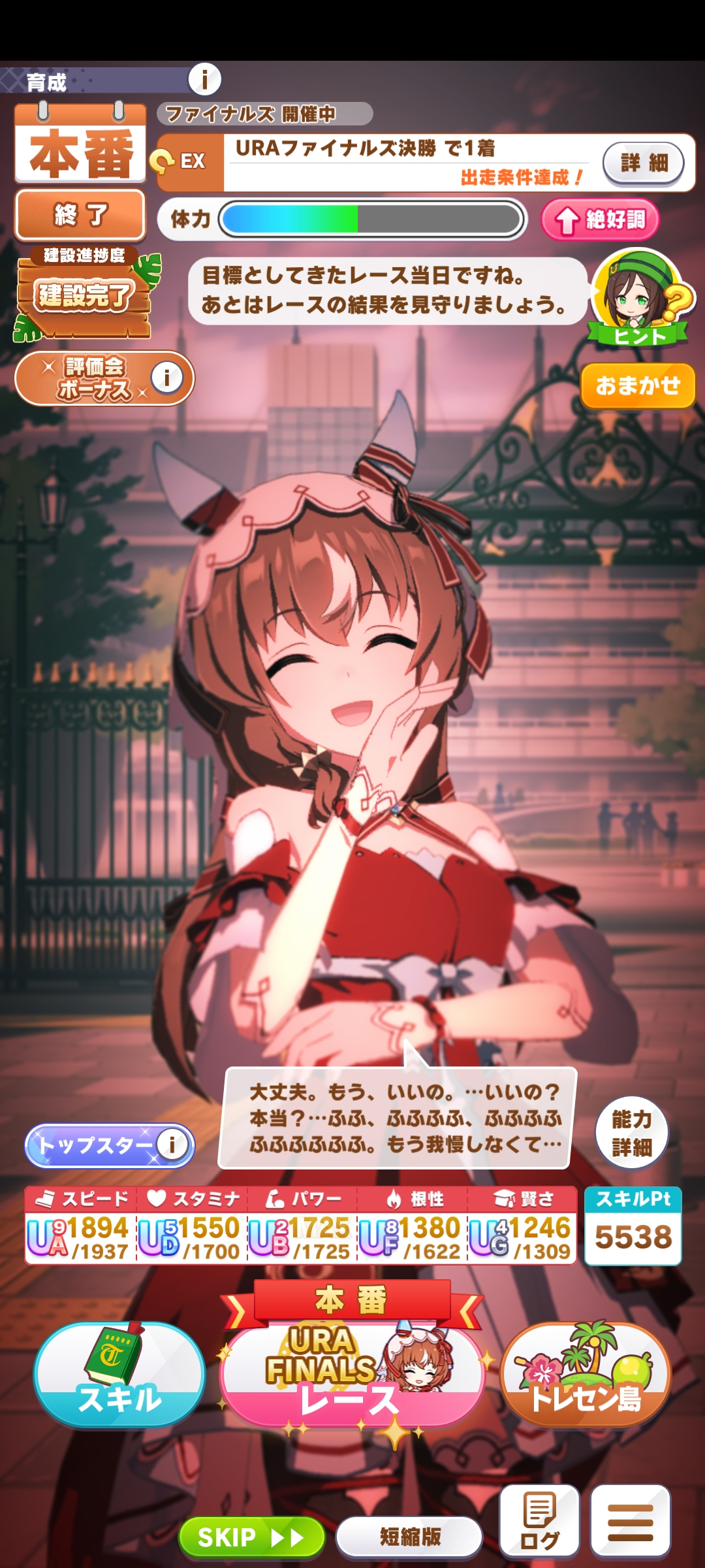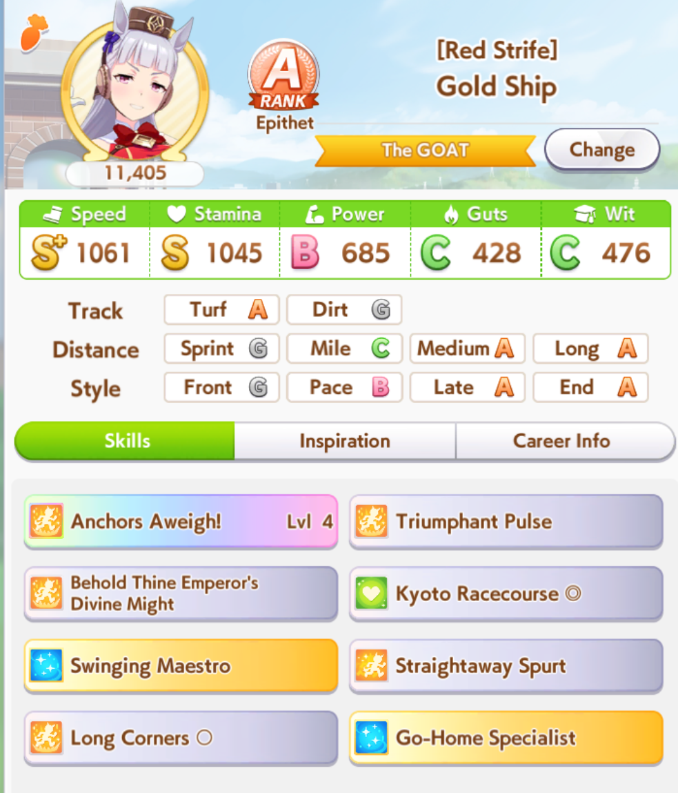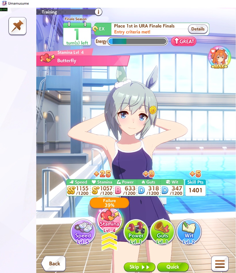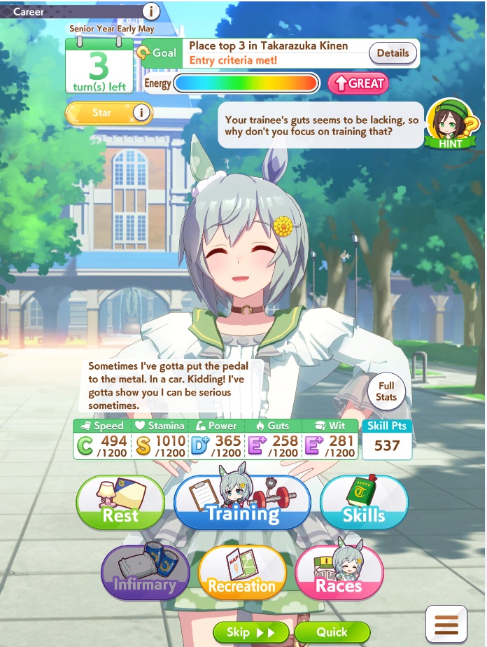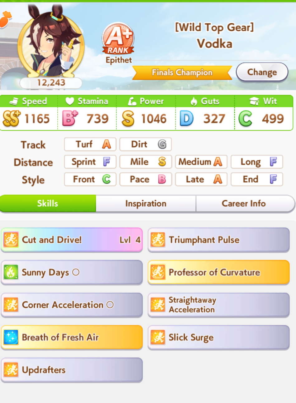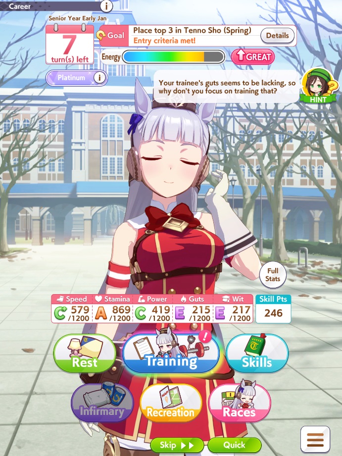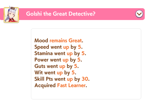 о ты даже скрытое требование к стамине и гатсу прошел (хотя там вроде надо 600+/400+ поправьте кто знает), за это на трасе доп скорость дадут