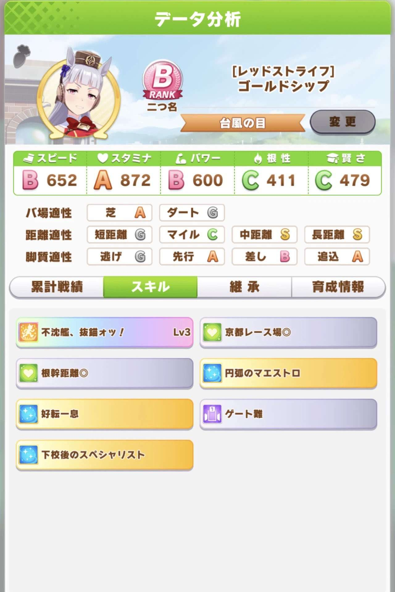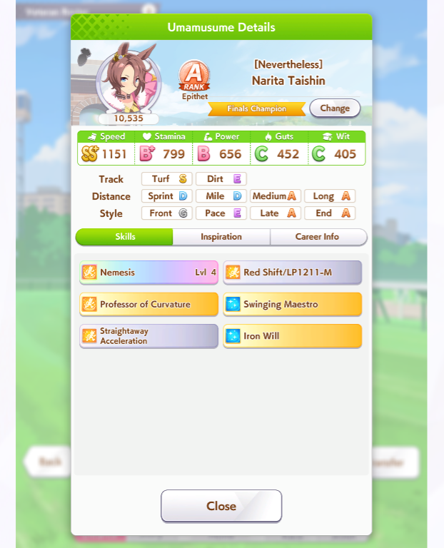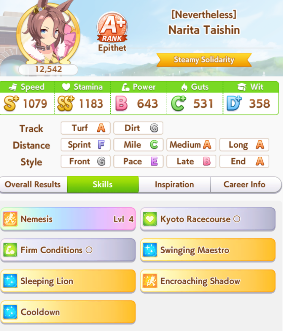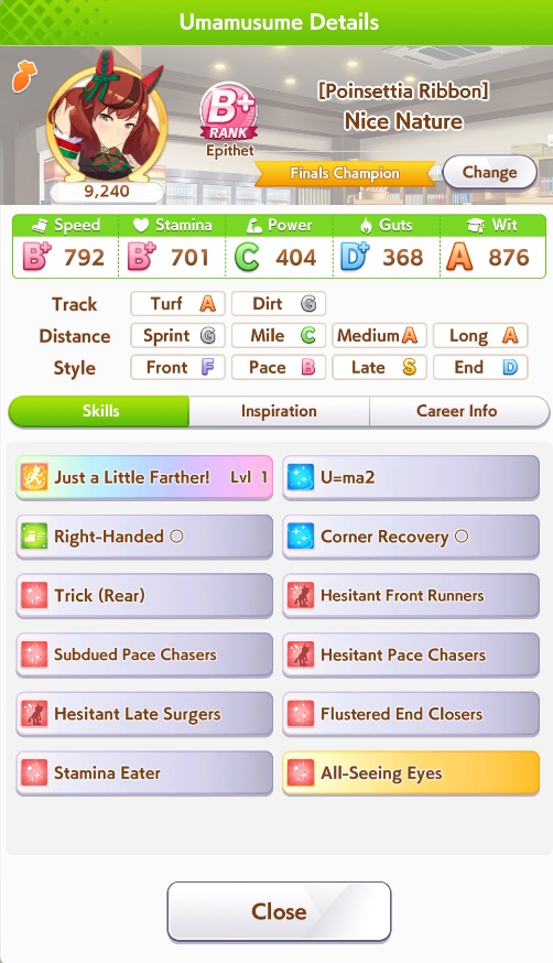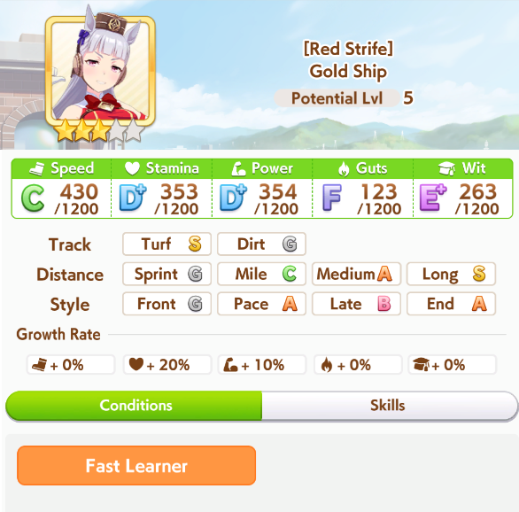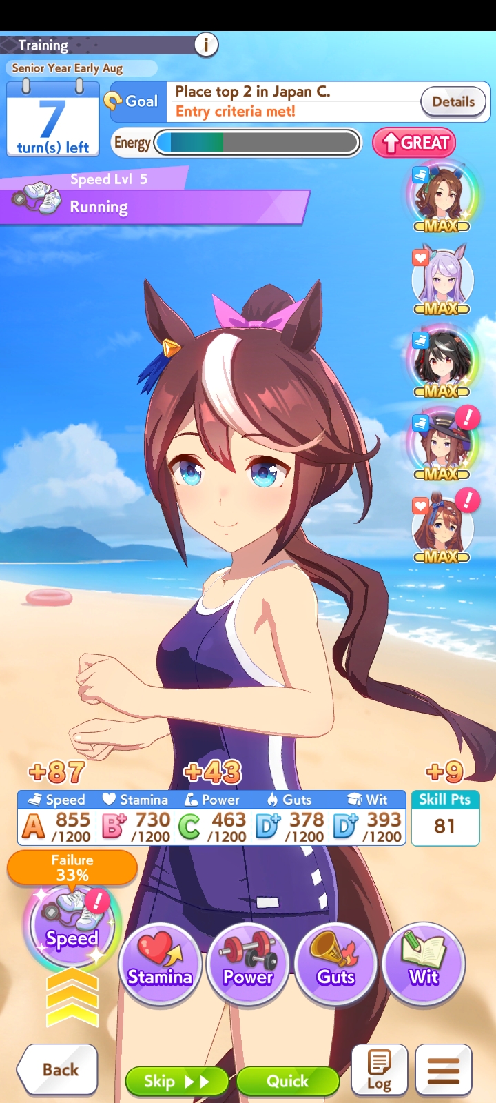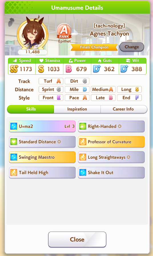 о ты даже скрытое требование к стамине и гатсу прошел (хотя там вроде надо 600+/400+ поправьте кто знает), за это на трасе доп скорость дадут