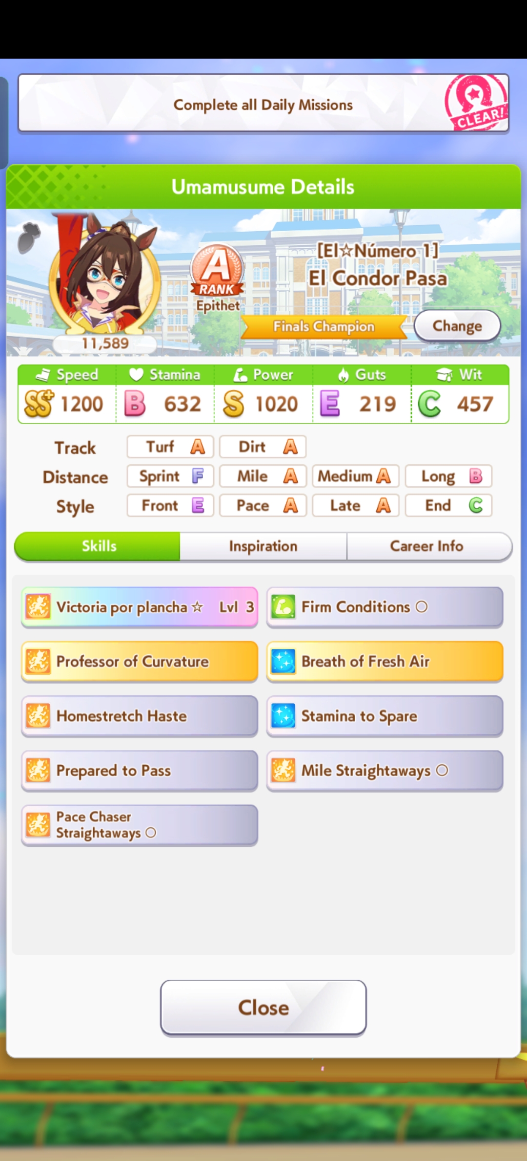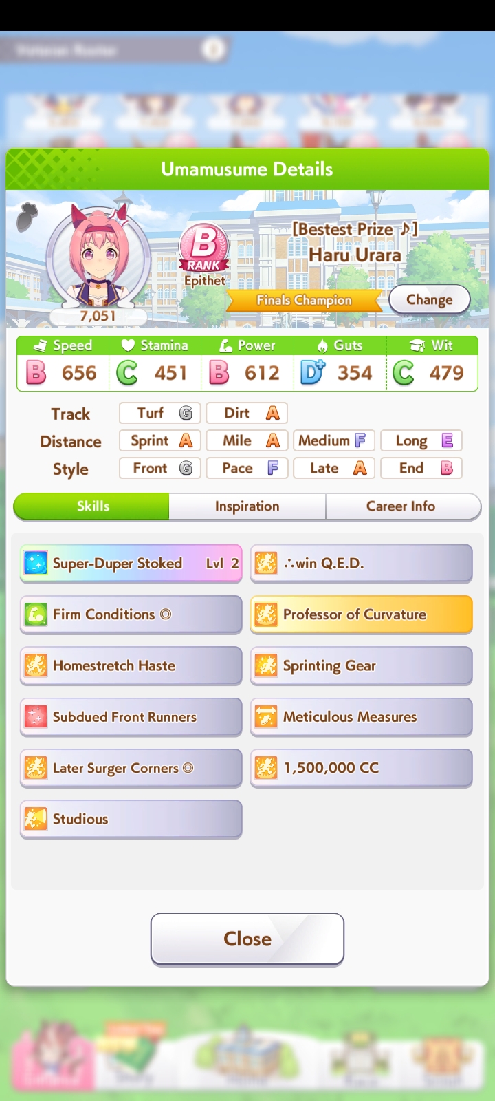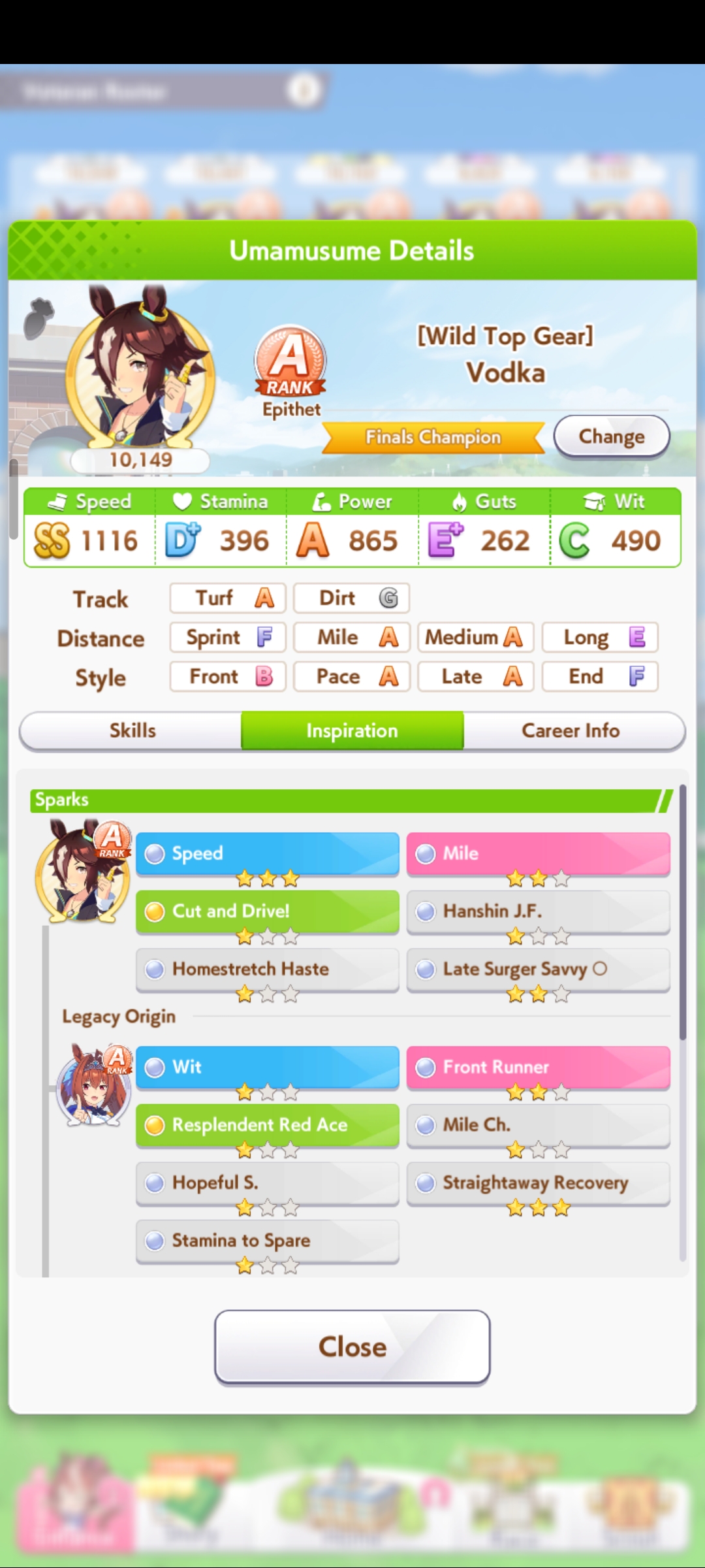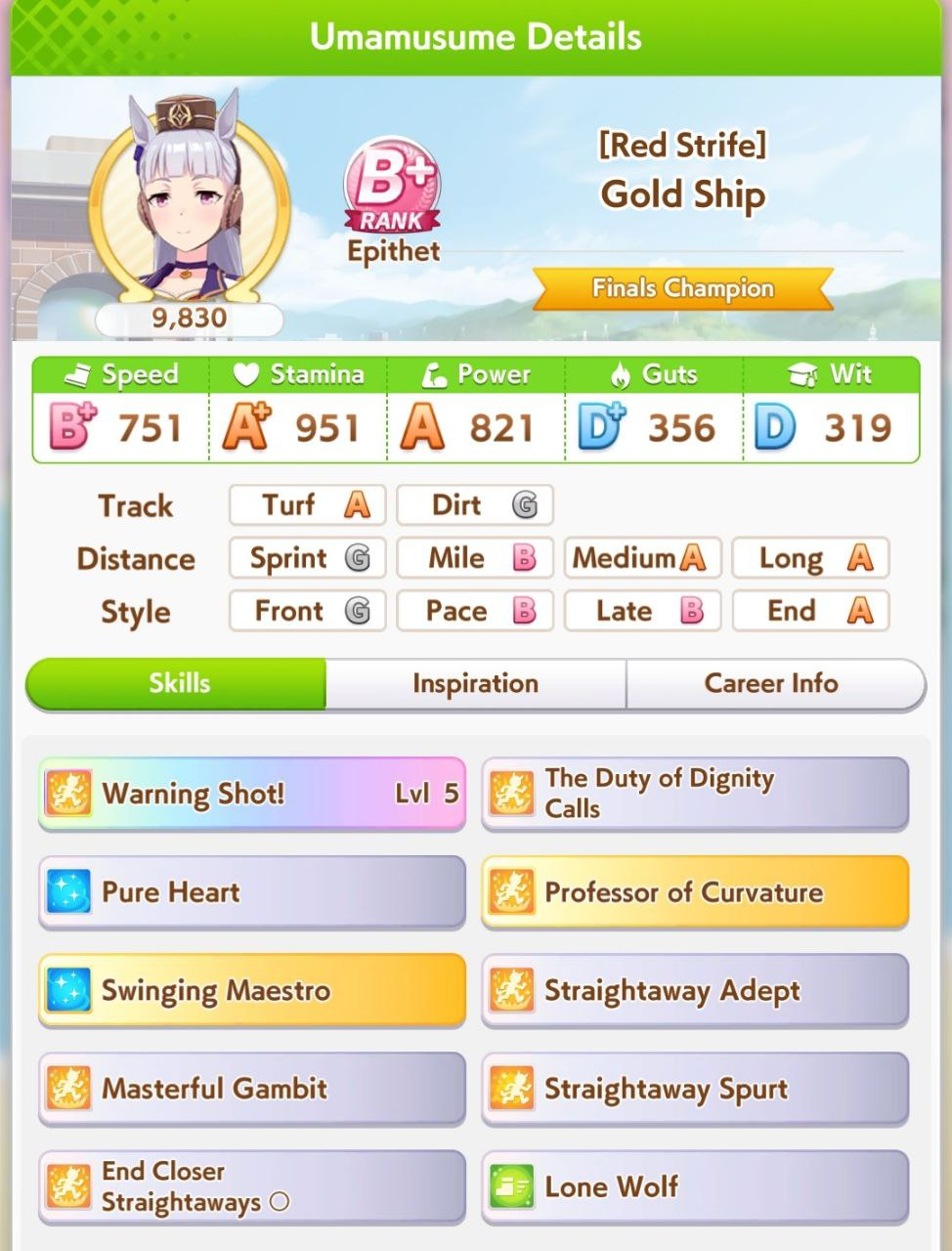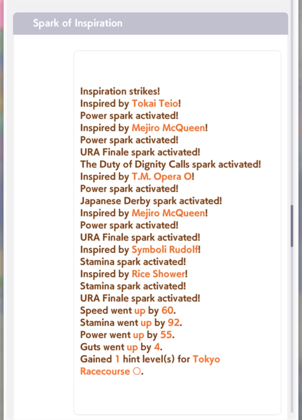 о ты даже скрытое требование к стамине и гатсу прошел (хотя там вроде надо 600+/400+ поправьте кто знает), за это на трасе доп скорость дадут