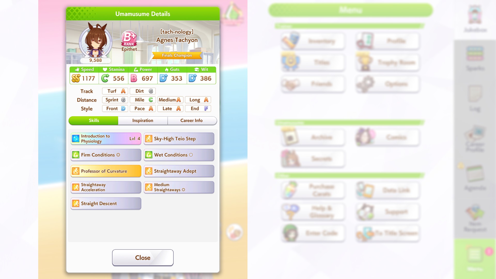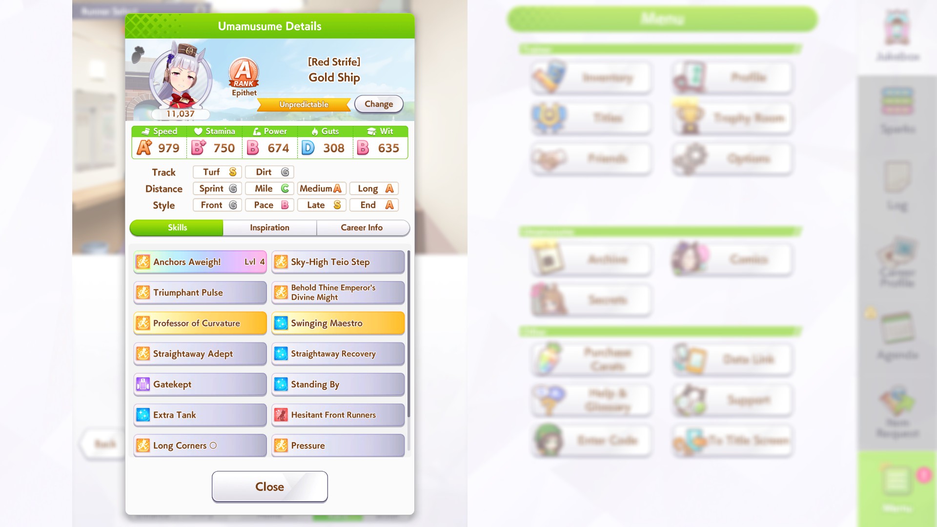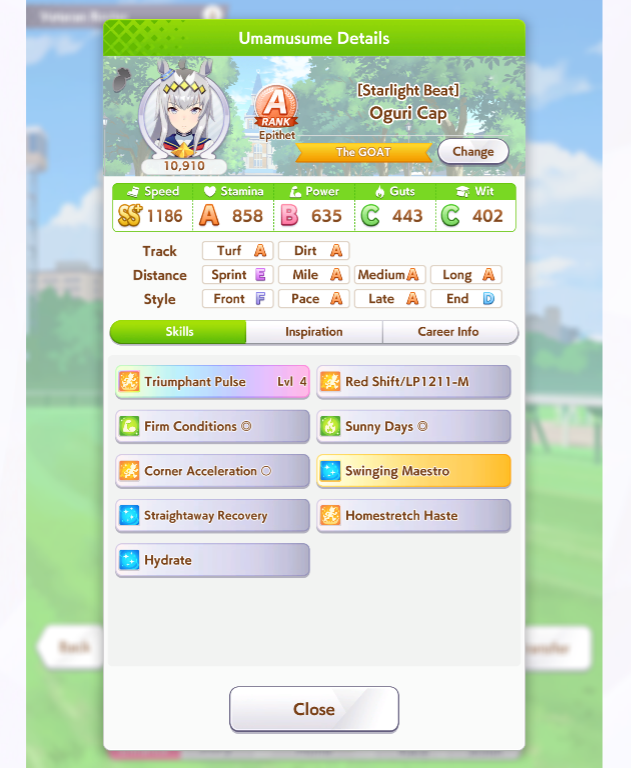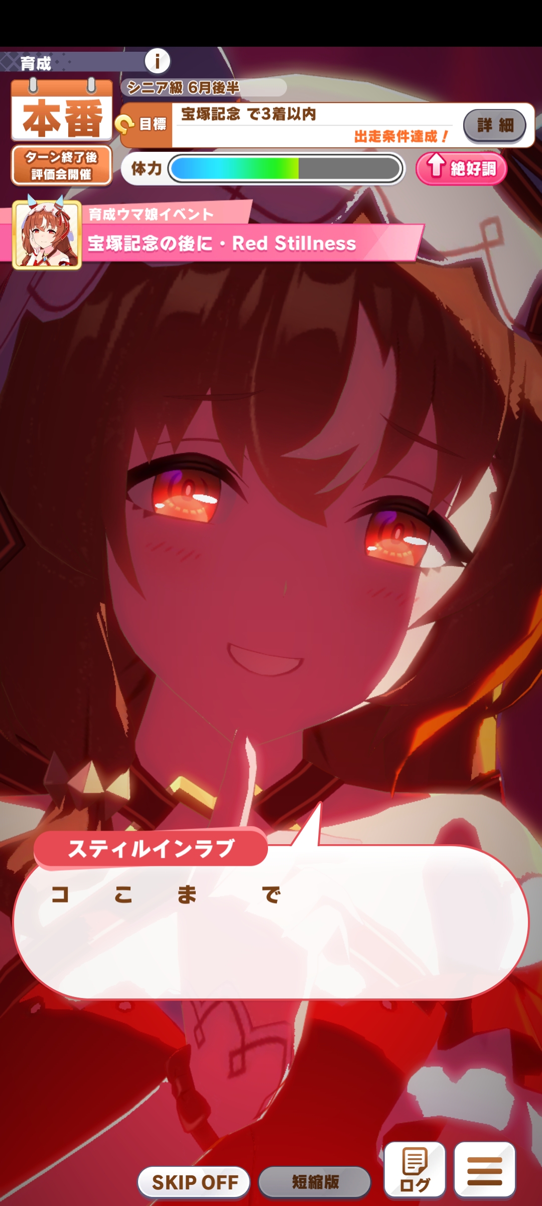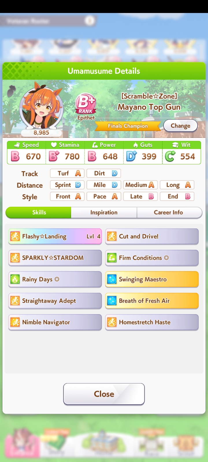 о ты даже скрытое требование к стамине и гатсу прошел (хотя там вроде надо 600+/400+ поправьте кто знает), за это на трасе доп скорость дадут