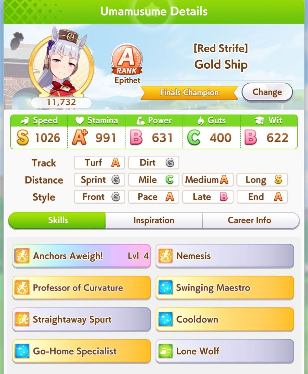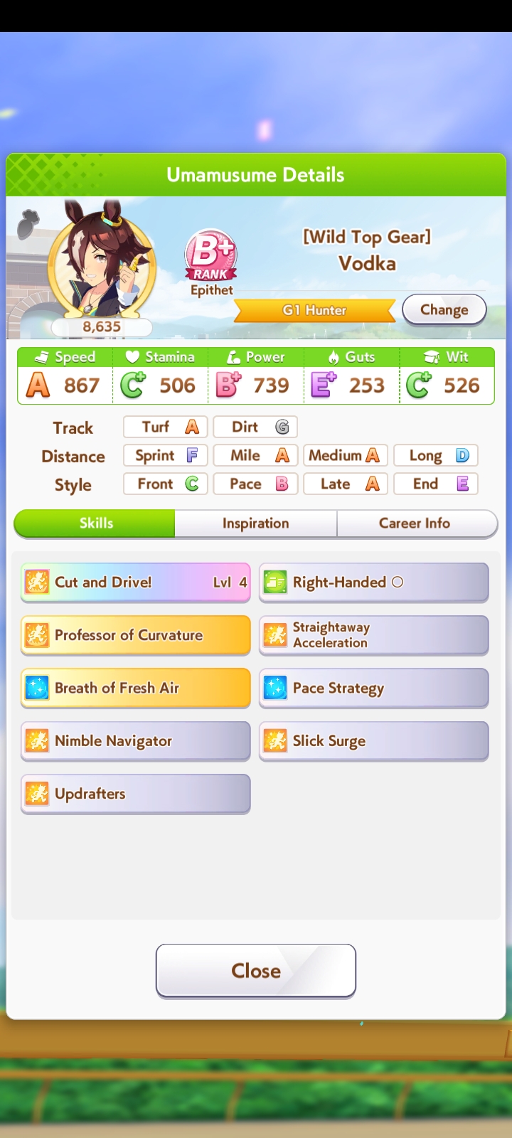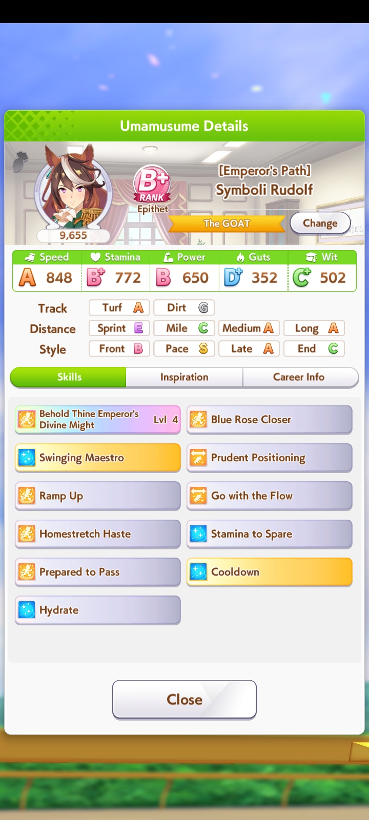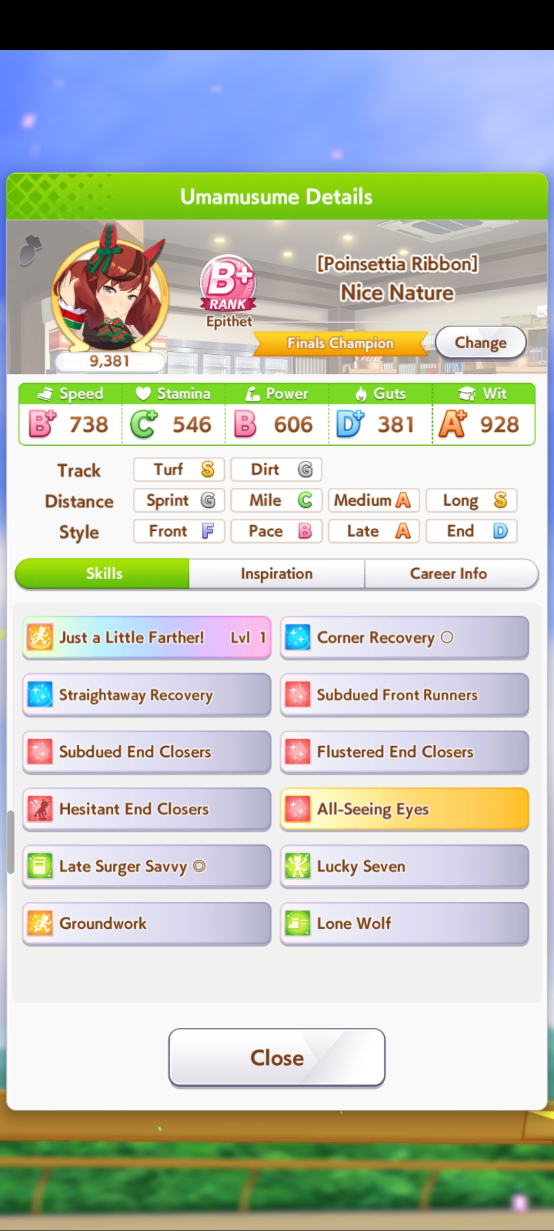 о ты даже скрытое требование к стамине и гатсу прошел (хотя там вроде надо 600+/400+ поправьте кто знает), за это на трасе доп скорость дадут